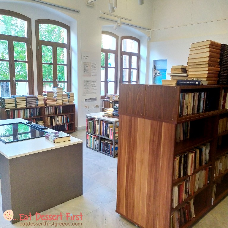 Finally, Mrs. Vasiliki showed us the tourist projection room. There we saw a large interactive board, which travels visitors to all the sights of the Municipality of East Mani. Ms. Vasiliki told us that she is in charge of the library and that the combination of the library and the museum is very successful, since one can come to the museum and see the library or vice versa come to the library and see the museum. Library books may not be too many, but they are of good quality, from almost all categories. Mrs. Vasiliki also stressed that the reading traffic of the library is huge and we are very happy for that!