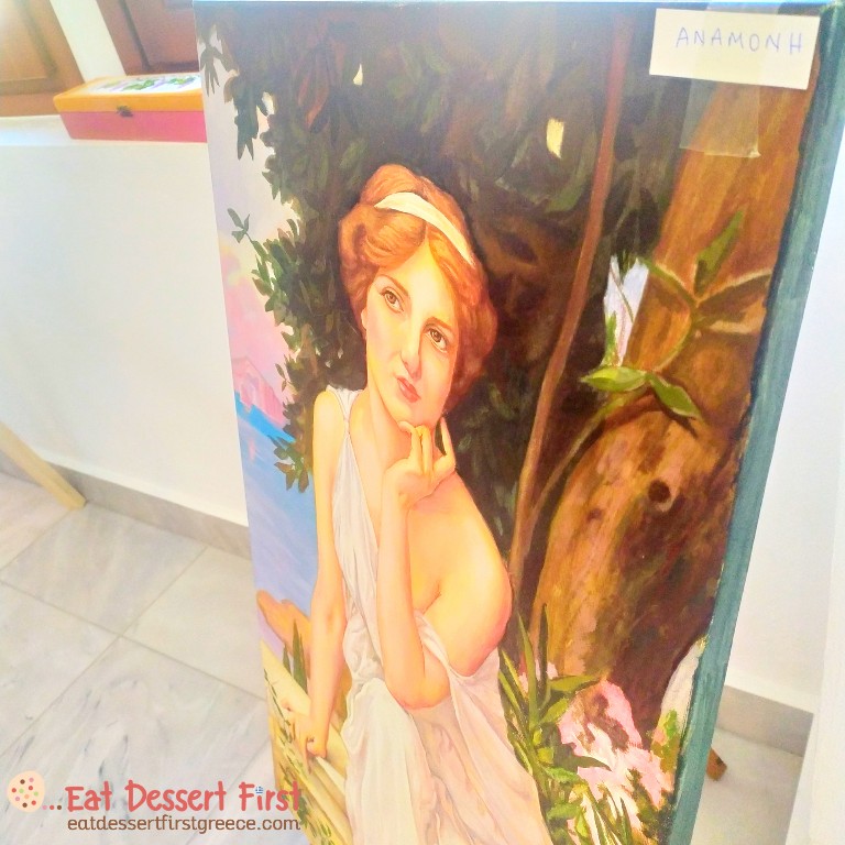 Poulia started our little tour by saying that she is a new painter, since she has started only four years ago. She started painting when she retired -her profession was dietitian and decorator- although art was something she had in mind for years.