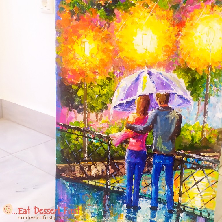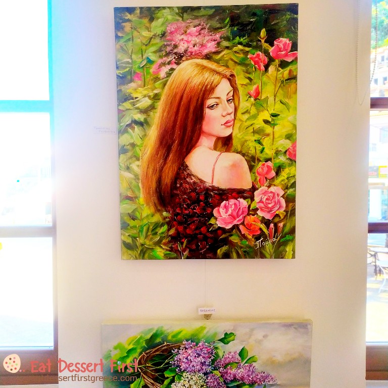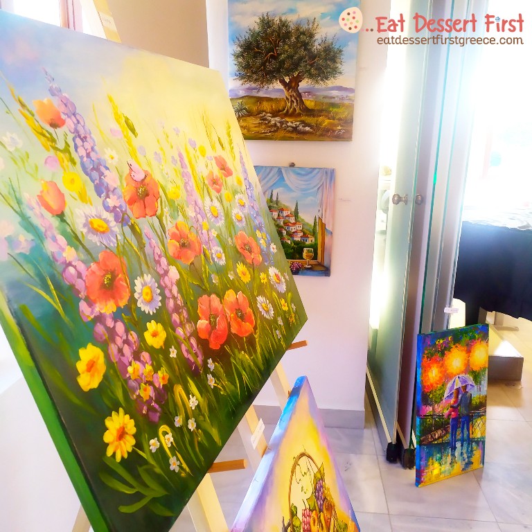 Poulia’s works are made with acrylic paints on canvas. What she likes most, she told us, is to capture nature, to render things as they really are. Some of her works are based on memories. We have to say that everything is wonderful and we wish her good luck!