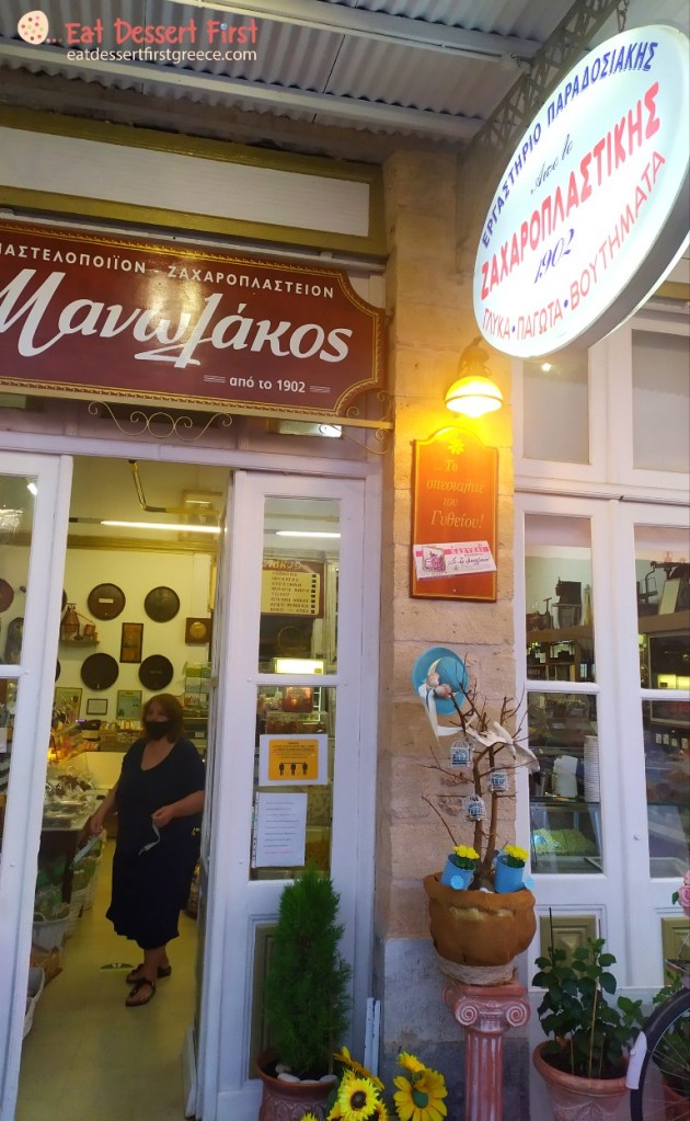 Leaving the exhibition we decided to take a short walk in the city of Gythio and look for a local business to get souvenirs for Athens – of course one of the local products of Mani. On our way we passed by the confectionery “Manolakos“, which as we saw on its sign has a history since 1902, and we could not resist.