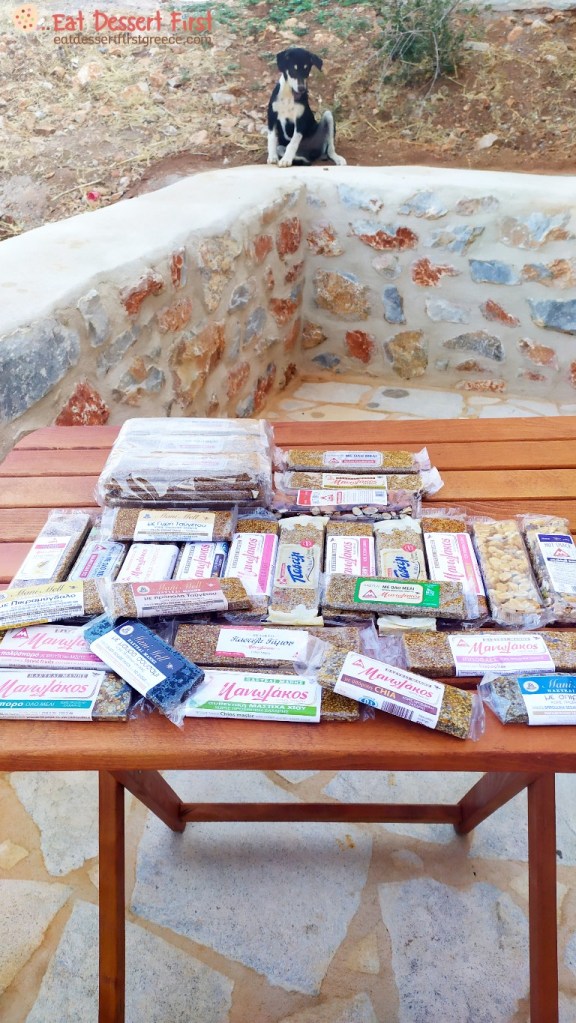 We left the store in a sweet mood and a bag full of pastelia: all honey pasteli, crunchy pasteli, almond pasteli, multigrain pasteli, with mastic, with goji berry, with chia seeds, with bitter almond, with forest fruit, with Taygetos pollen, with black sesame, with cranberry and much more… Thank you from the bottom of our hearts, they are all wonderful!