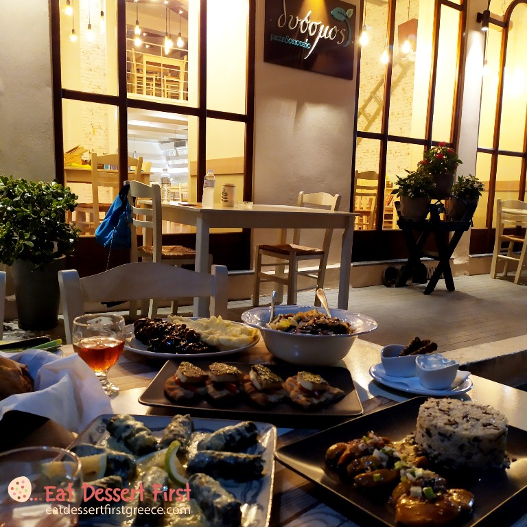 Our choice in Gythio was “Diosmos“, a family business of George Kapsoulias and his wife Stavroula Kakokefalou, which has existed for three years. It is a hidden gem, as it is located in a small alley, in an area of refugee housing. With tables on a street that closes at night and becomes a sidewalk, due to the new measures for the distances of the tables, the store has a warm, family atmosphere, which was created mainly by the attitude of its people, combined with the elegant decoration.