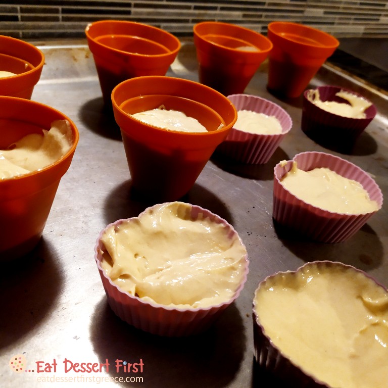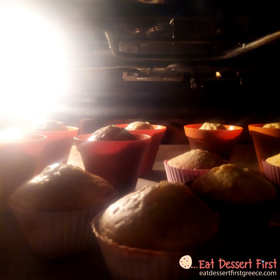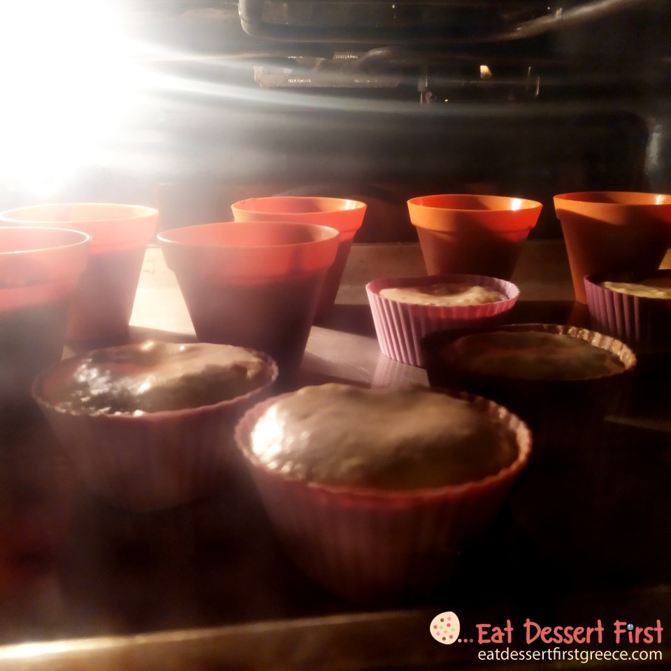 Γεμίζουμε τα φορμάκια μας και ψήνουμε σε προθερμασμένο φούρνο στους 175°C για 20 λεπτά. Ελέγχουμε με μια οδοντογλυφίδα ότι έχουν ψηθεί καλά (πρέπει να βγαίνει καθαρή). Έτοιμα τα κεκάκια μας!
