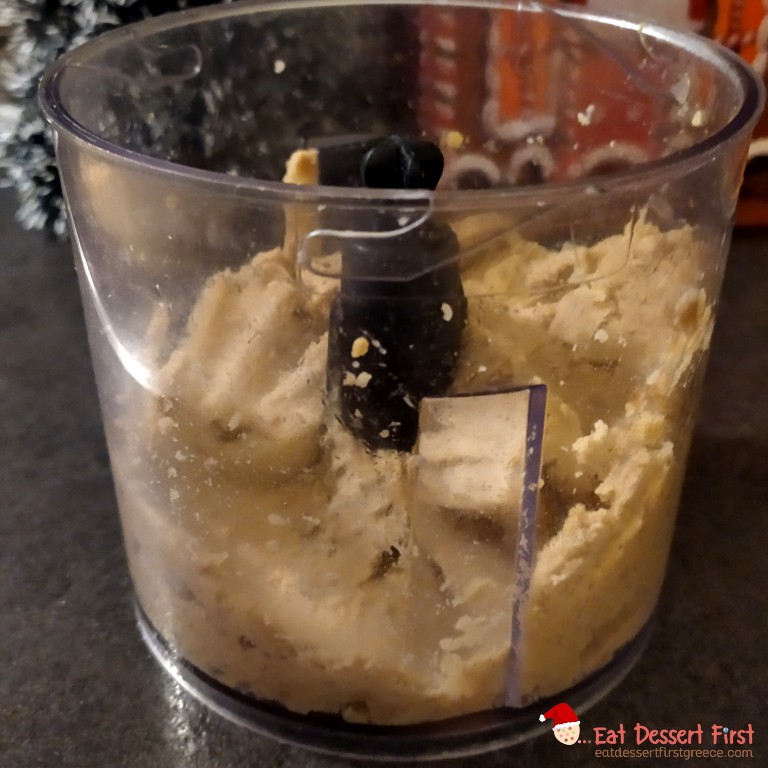 First we boil the chestnuts and clean them (we can also buy ready boiled chestnuts to save time). We had baked ours in the fireplace and we had them ready! Put them in the blender and grind them until they become a paste. Because our chestnuts were roasted and did not have enough moisture, we added a tablespoon of boiling water. If they are just boiled, logically you will not need to do so. The texture we want to have is like a paste but spreadable, not too thick.