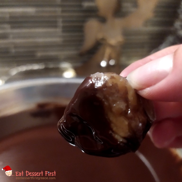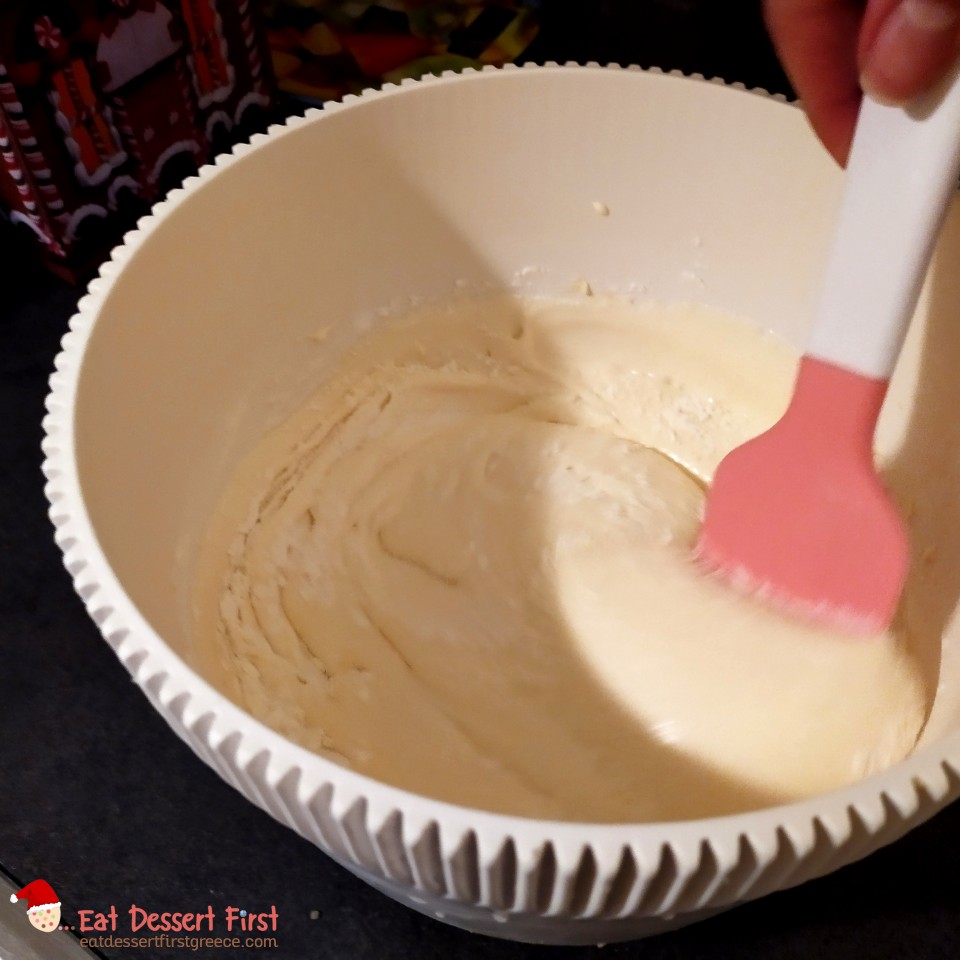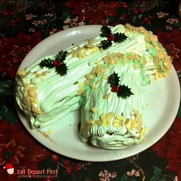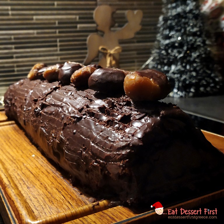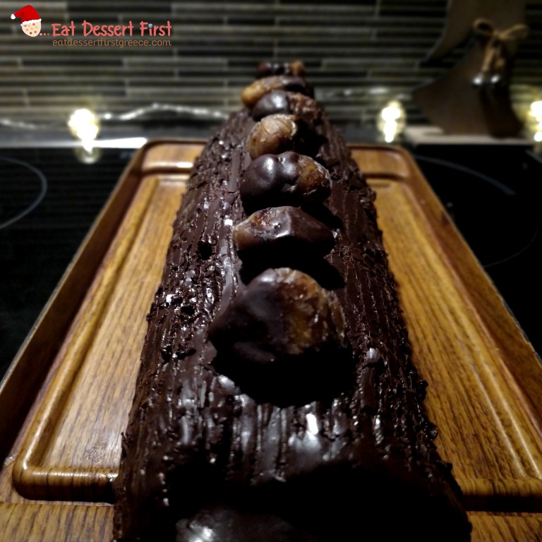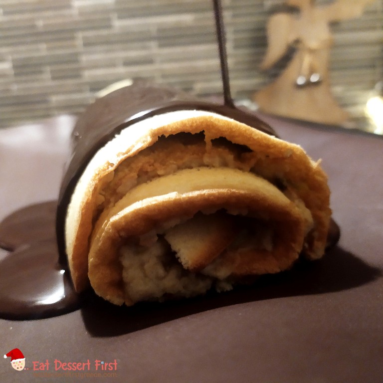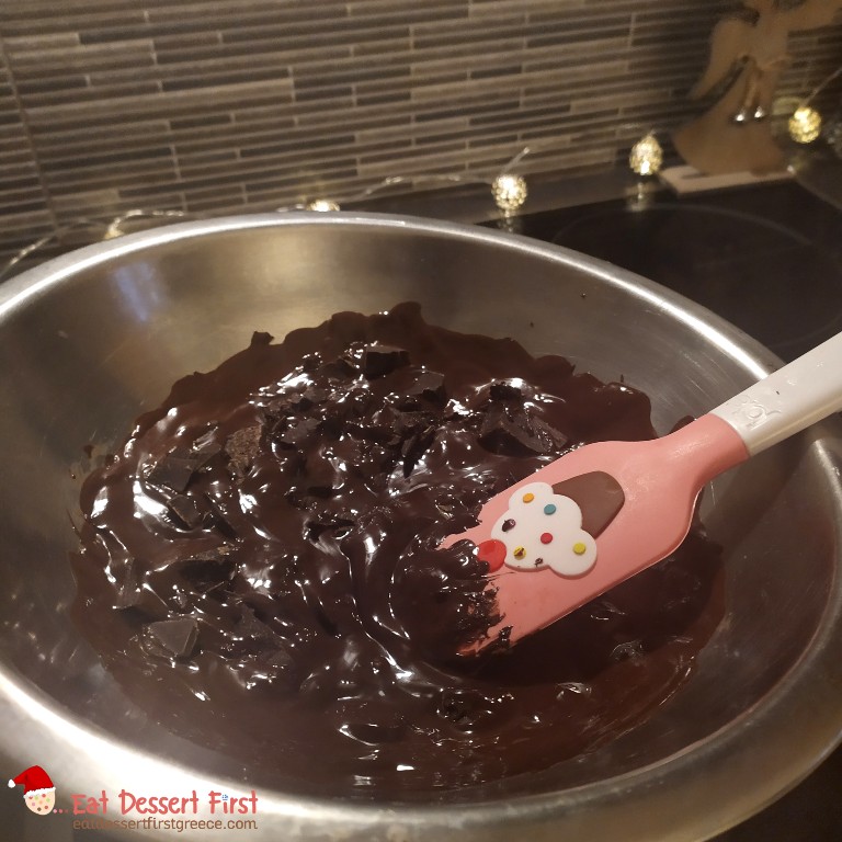For covering the yule log we experimented and… we succeeded! We made a chocolate ganache with extra virgin olive oil instead of heavy cream and it turned out perfect! Our ganache came out smoother and shinier on the one hand, as well as healthier on the other, since it contains the good fats and nutrients of olive oil. It is also a fasting choice, and also ideal for vegetarians and vegans, as it does not contain dairy.