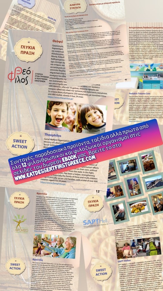 Τo πρώτο μας δίγλωσσο ebook είναι δωρεάν για όλους! 70 σελίδες με γλυκιές και αλμυρές συνταγές, ταξιδιωτικές φωτογραφίες από Ελληνικούς προορισμούς, πληροφορίες για παραδοσιακά προϊόντα της χώρας μας και 12 φιλανθρωπικούς και φιλοζωικούς οργανισμούς που μας τίμησαν με την συμμετοχή τους! Εμείς το εκτυπώσαμε κιόλας όπως θα δείτε στο παρακάτω βίντεο όπου το ξεφυλλίζουμε. Κατεβάστε το σε μορφή pdf, είναι μόλις 2.6 mb κατεβαίνει και αποθηκεύεται εύκολα και στο κινητό! Καλή και γλυκιά ανάγνωση!