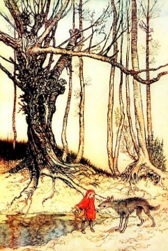 Take Little Red Riding Hood for example. A little girl, at the urging of his mom, starts going on her own to her grandmother’s house through the forest. Her mom has explicitly told her to go straight to her grandmother’s house. On the way, Little Red Riding Hood meets the the Big Bad Wolf and talks to him. He, after learning where her grandmother’s house is, tries to take her out of her way, distracting her to the beautiful flowers of the forest. While Little Red Riding Hood is picking flowers, the wolf arrives at her grandmother’s house and devours her. Then he gets dressed and waits for the little girl to come. When Little Red Riding Hood finds the wolf in her grandmother’s place, she worries and makes remarks such as “Grandma, what big ears you have” which end in the fatal statement “Grandma, what a big mouth you have” and the scary answer-revelation “To eat you better”. There the wolf rushes and eats Little Red Riding Hood. He lies down to digest and with his snoring catches the attention of the passing hunter. The hunter suspects what may have happened and so grabs a pair of scissors and begins to cut the wolf’s belly. This saves the grandmother and Little Red Riding Hood, who come out of the womb alive. To punish the wolf they fill the belly with stones and the wolf dies. A macabre end to a scary story.