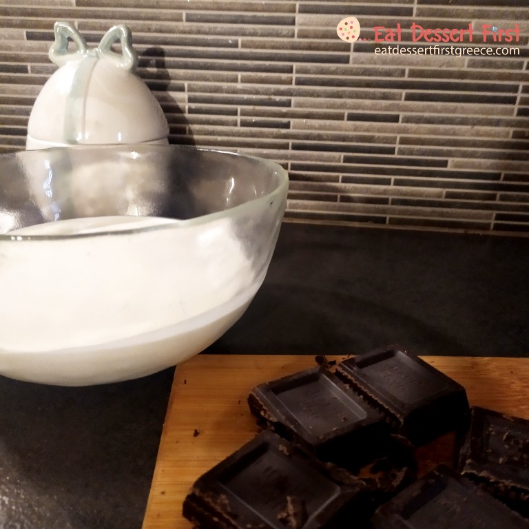 Τα υλικά για την αφρατεμένη γκανάζ σοκολάτας