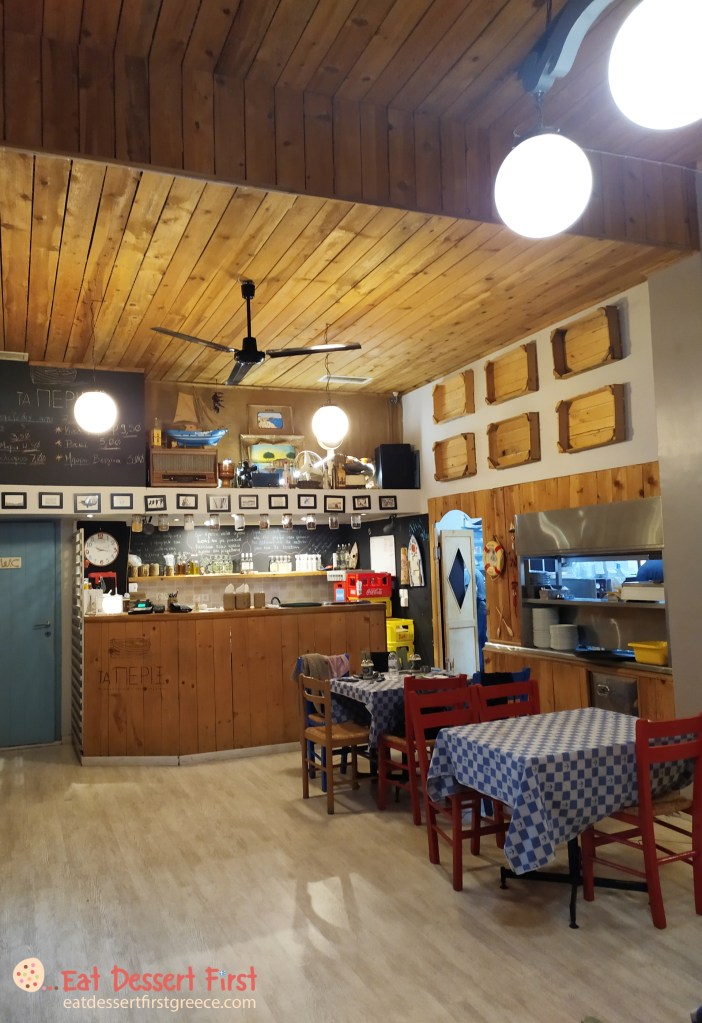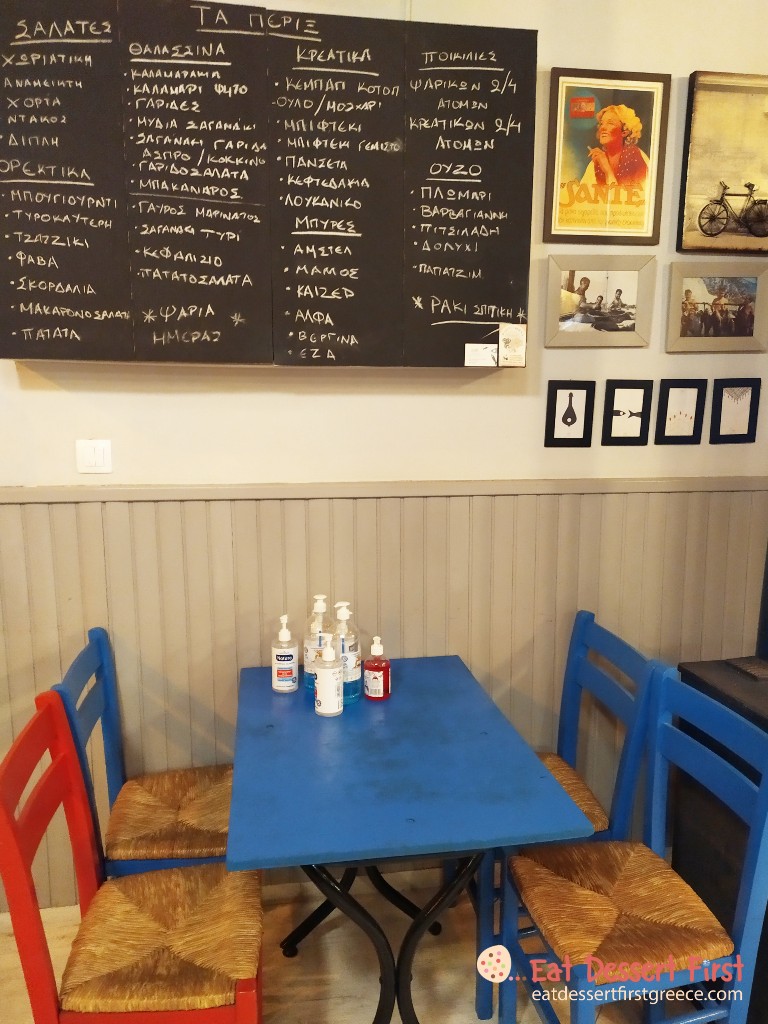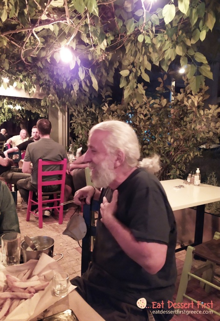 Ξεκουράστηκα για πρώτη φορά στην ζωή μου… δουλεύω 44 χρόνια κάθε μέρα, μέρα-νύχτα. Έφτιαξα όλα τα εργαλεία που είχα αγοράσει, δεν ήξερα τι είχα. Τώρα λοιπόν που έκατσα, ασχολήθηκα  με το μαγαζί. Έφτιαξα τον εσωτερικό χώρο, κάποια πράγματα που ήθελα να τα φτιάξω για να δουλεύω καλύτερα στην κουζίνα, κλάδεψα τις μουριές, τις έφερα ίσια όλες.