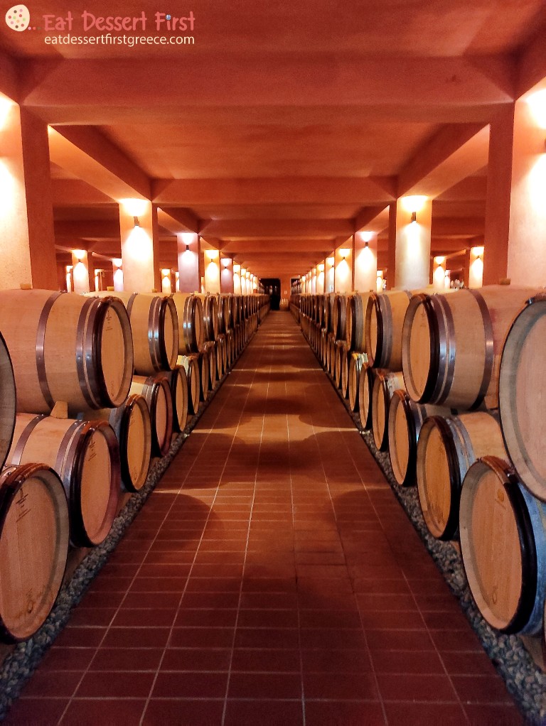 By the time we visited the winery, in early September, the harvest had begun, as we could tell from the smells inside the winery. Sauvignon Blanc and Chardonnay were slowly being picked, followed by Malagouzia, the first white grapes to hit the market in November. By the end of September, the harvest will be completed for all varieties. As Mrs. Meditskou later told us, a “green harvest” takes place on the estate in June, during which the unripe bunches are removed and the plants are lightened, so that the grapes have the desired quality based on the high standards of the company.