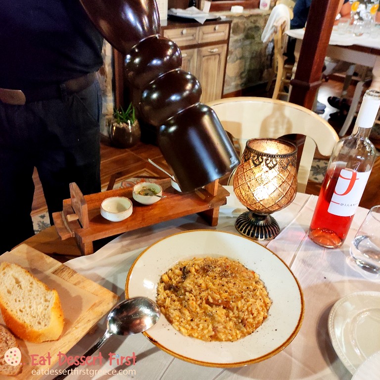 After touring for a while in the atmospherically lit outdoor areas of the restaurant, we sat at our table to taste the menu suggested by Mr. Thomas. The cuisine served by the restaurant, he told us, is local, with traditional recipes made with local ingredients by their own producers, but also with a modern twist. We were looking forward to trying it!