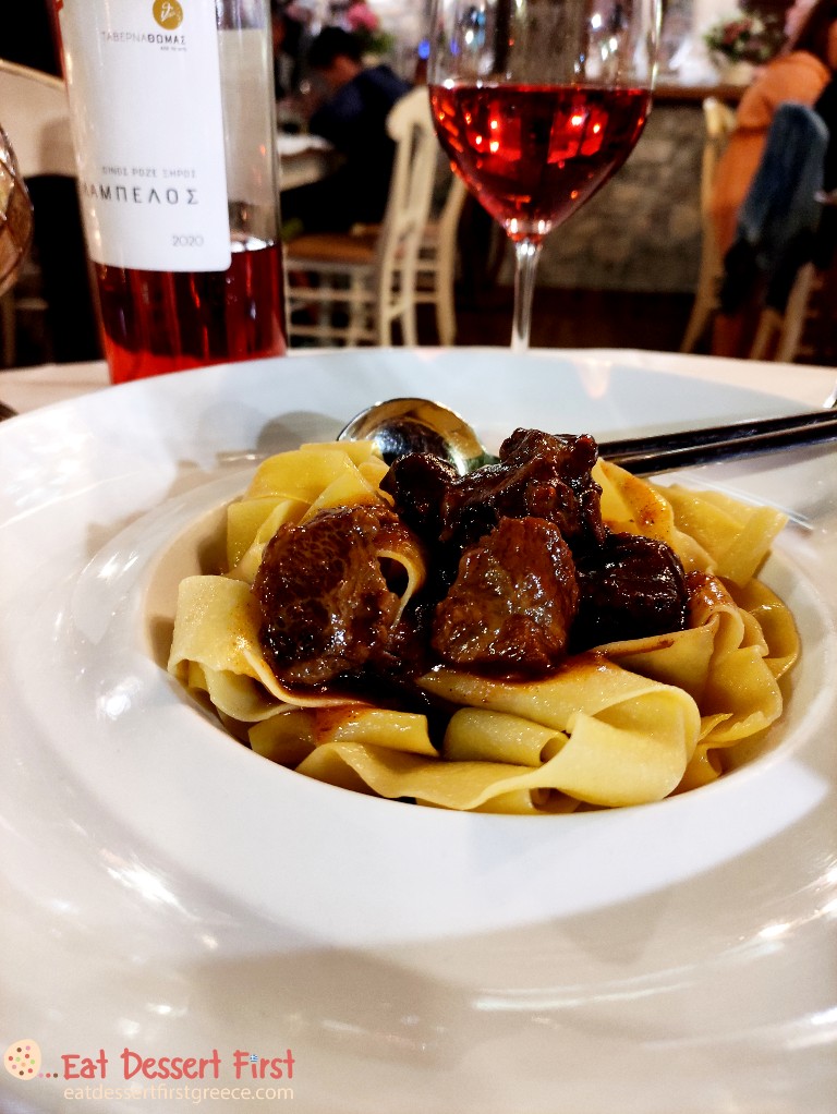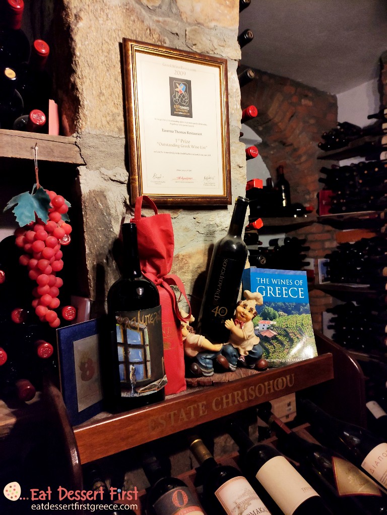 Mr. Thomas told us that their wine list has 365 different labels of Greek wines in 750 ml bottles, a different wine for each day of the year. At the same time, there is a list of aged Greek wines with 104 different aged wines and a list of large bottles, which reach 27 liters per bottle. The aged ones start with Mavrodaphne Karela of 1944, going to the Porphyrogennitos Porto Carras of 1977 and ending with the ALPHA Estate of 2004. In total, just over 500 labels of Greek wines are served. What makes the difference in Taverna Thomas is that it offers exclusively Greek wines, based on the viticultural zone of Amyntaio, Xinomavro.