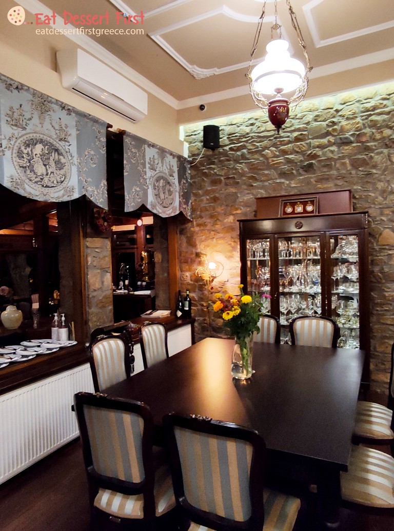 Mr. Thomas explained to us that the restaurant uses only Greek products, whether for example cheese or meat -they have organic Greek Black Angus; they try everything they serve to be only Greek, mainly from the wider area. What they do not find in the area is procured from other places, such as buffalo from Kerkini. The purpose is for whatever that is being served to have a label and be Greek; they do not serve anything in bulk. Mr. Thomas also told us that the company has been certified with ISO 22000 in 2007, when the final renovation of the kitchen took place.