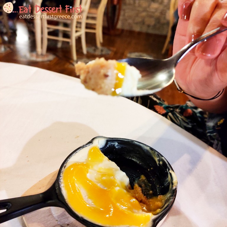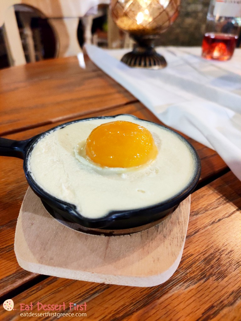 But there was also time for the best… the dessert of course! As Mr. Thomas told us, it is one of the favorites of his brother, who also loves pastry, something one can see at first glance! As for the taste, it is indescribable! So, we enjoyed our dessert, but as if how delicious it was was not enough, a surprise was waiting for us: a fried egg, which, however, was not what it seemed…