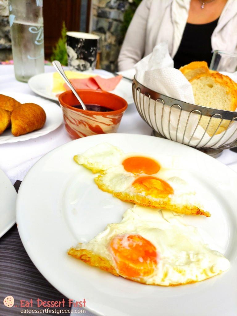 Ήταν ακόμα νωρίς το απόγευμα και υπήρχε ένα μέρος στο οποίο θέλαμε οπωσδήποτε να πάμε, το café-εστιατόριο Εβόρα, ή Αναψυκτήριο, όπως το ονομάζουν οι ντόπιοι, πάνω από το χωριό Παναγίτσα. Μας είχαν πει πως έχει φοβερή θέα και πως σερβίρει πεντανόστιμα pancakes, οπότε όπως καταλαβαίνετε η απόφαση ήταν μονόδρομος!