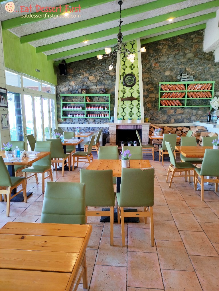 Για τις πιο κρύες μέρες του φθινοπώρου και του χειμώνα, ο ξενώνας Μετόχι του κ. Νεκτάριου Βολιώτη και της κ. Ιωάννας Αρσενίου διαθέτει έναν πολύ όμορφα διακοσμημένο κλειστό χώρο, φτιαγμένο με ξύλο και πέτρα, με σπιτική αίσθηση και τζάκι, όπου μπορεί κανείς να πιει το καφεδάκι του και να πάρει το πρωινό του, αλλά και να απολαύσει αργότερα το ποτάκι του. Εμάς, όμως, μας αρέσει και ο συννεφιασμένος καιρός, οπότε καθήσαμε και πάλι στην αυλή του ξενώνα και πήραμε δυνάμεις για τη μέρα που θα ακολουθούσε.