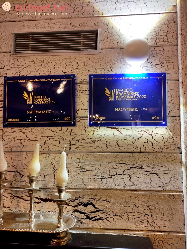 Έχοντας απολαύσει την υπέροχη λίμνη κατευθυνθήκαμε προς το βραβευμένο με Βραβείο Ελληνικής Κουζίνας εστιατόριο Ναουμίδης. Επιλέξαμε να καθήσουμε στα τραπέζια στον εξωτερικό, στεγασμένο χώρο, για να έχουμε πλήρη θέα του υδάτινου τοπίου.