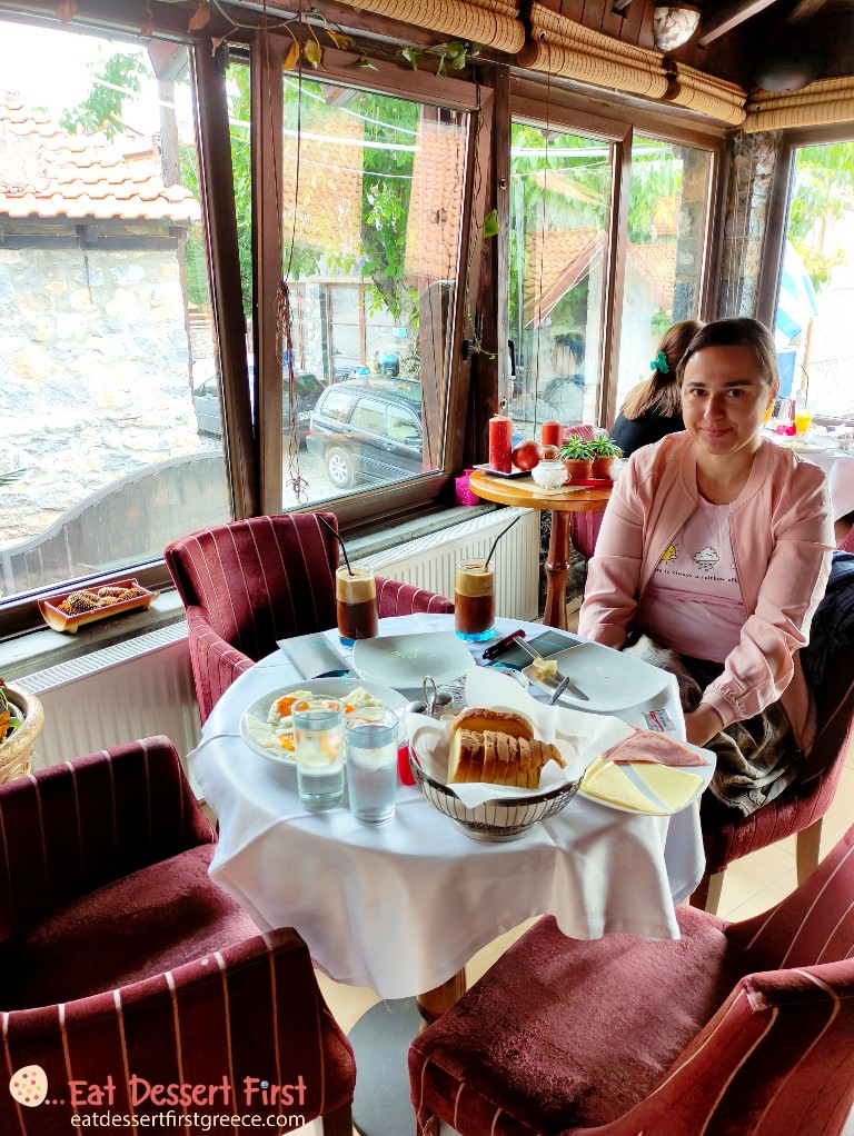 The cloudy morning finds us at the Metohi Ιnn in Old Saint Athanasios. It was a bit chilly and so we decided to have our coffee and our breakfast in the warm interior of its cafe. There we enjoyed fried village eggs together with cold cuts and cheeses, to get energy for the day that will follow. We hoped the weather would open up a bit, since we had a lot of walks to do!