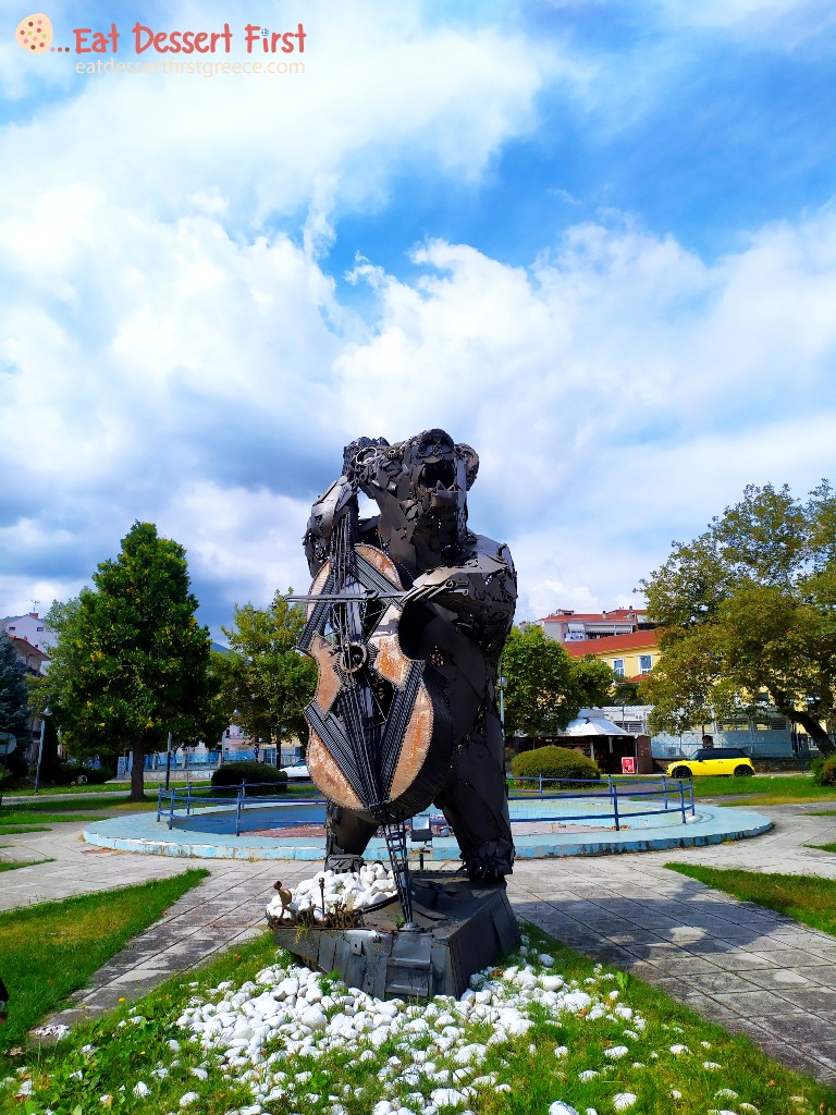 Entering Florina by car, the first thing that struck us was a very large metal sculpture depicting a bear playing a musical instrument. Florina is an artistic city, with its University Department of Fine and Applied Arts, its Museum of Contemporary Art and the various artists’ workshops scattered throughout its streets; one of them we would visit a little later. Therefore, what better way than to be welcomed in the city by a large work of art that can not go unnoticed!