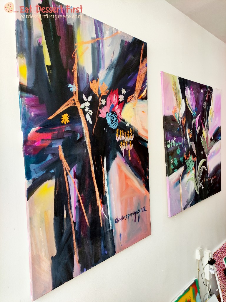 We may not have seen the city museum, but we did not miss the art! We entered Christina Papagrigoriou’s painting workshop, Studio 83, talked to the artist and observed her beautiful, colorful and lively paintings.