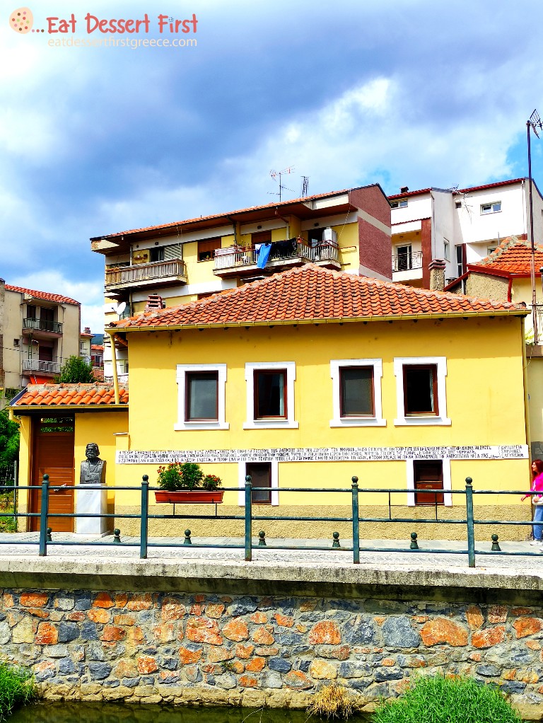 But before we reach the river, we passed the building which houses the Folklore Museum of the Florina Culture Club. Unfortunately we saw the majestic neoclassical building in very poor condition and the museum closed. On the website of the municipality we read that the museum belongs to the Culture Club of Florina and that it houses one of the most important collections in Greece that specializes in beekeeping, with rich exhibits and many photos. It was a real pity that we could not see it…