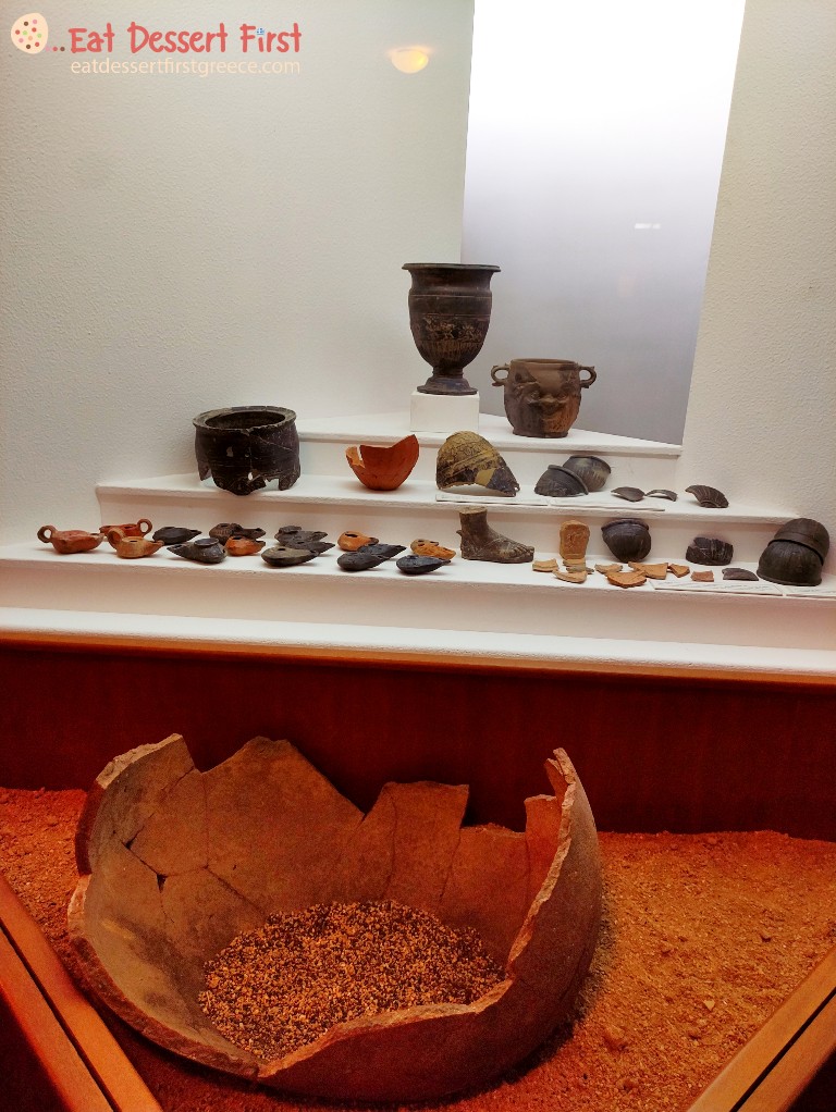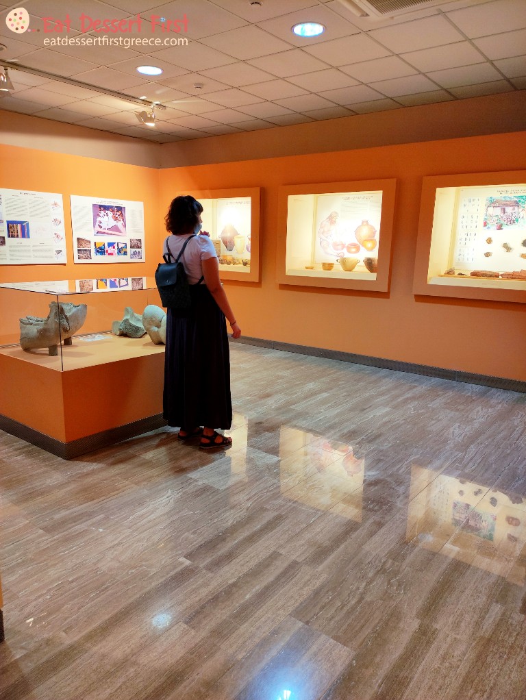The first thing we saw in the museum was an outdoor exhibit: a two-story ceramic kiln for baking pottery from the archaeological site of Achlada. As we read in its description, its side walls are made of red clay.