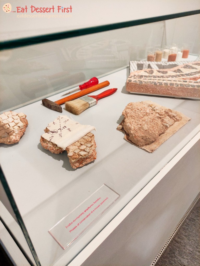 Going to the fourth and last room of the ground floor we were faced with a huge mosaic! It is a mosaic that decorated the floor of a building from Roman times (2nd-3rd century AD) from Kato Kleines.