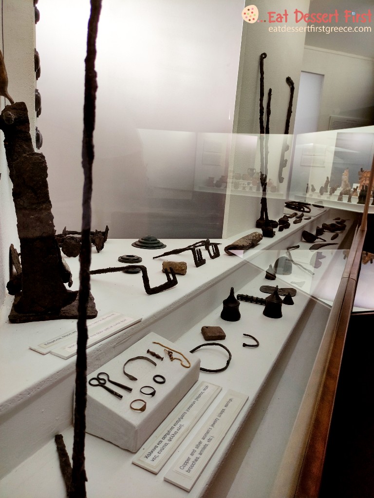 Going up to the first floor of the museum, we saw two spaces. The first part includes findings from the Hellenistic period, ceramic, clay and metal objects. These findings come from excavations of archaeological sites in Petres, Amyntaion and on the hill of Panteleimonas in Florina.