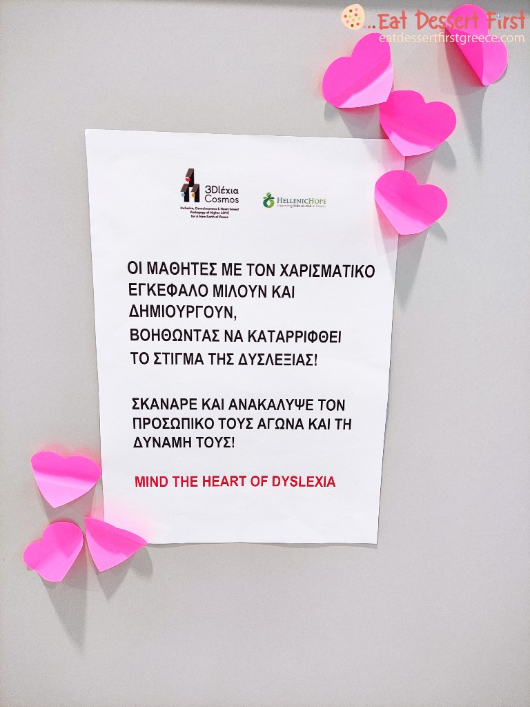 Το Σάββατο 30 Οκτωβρίου είχαμε τη χαρά και την τιμή να είμαστε προσκεκλημένοι στην υπέροχη εκδήλωση “Mind the Heart of Dyslexia” που διοργάνωσε το SOS4Love Project στο Σεράφειο του Δήμου Αθηναίων. Ευχαριστούμε τη δημιουργό του οργανισμού κ. Αγγελική Παππά και τους συντελεστές της εκδήλωσης μέσα από την καρδιά μας που μας έδωσαν την ευκαιρία να συμβάλλουμε κι εμείς με τις μικρές μας δυνάμεις στο να προβάλλουμε μέσα από τις ιστοσελίδες μας eatdessertfirstgreece.com και elladamouglykia.com και όλα μας τα social media, τον τόσο σημαντικό τους σκοπό.