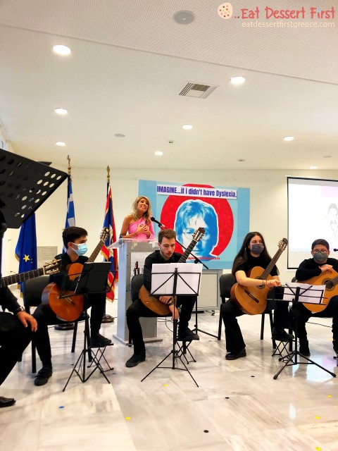 Η κοντράλτο κ. Μαρίτα Παπαρίζου μαζί με την Santa Barbara Guitar Orchestra μας ταξίδεψαν στο Imagine του John Lennon, ενός από τους διάσημους δυσλεξικούς, και σε άλλα δύο κομμάτια τα οποία τιμούν τον άνθρωπο και την ελευθερία. Έκπληξη της βραδιάς η ερμηνεία του αγαπημένου όλων μας Imagine από τον κ. Φώτη Χαλκίδη μαζί με την κ. Παπαρίζου! Φέτος κλείνουν 50 χρόνια από τη δημιουργία του Imagine… Ακόμα μας εμπνέει, η διαφορετικότητα μας εμπνέει, τα παιδιά μας εμπνέουν.