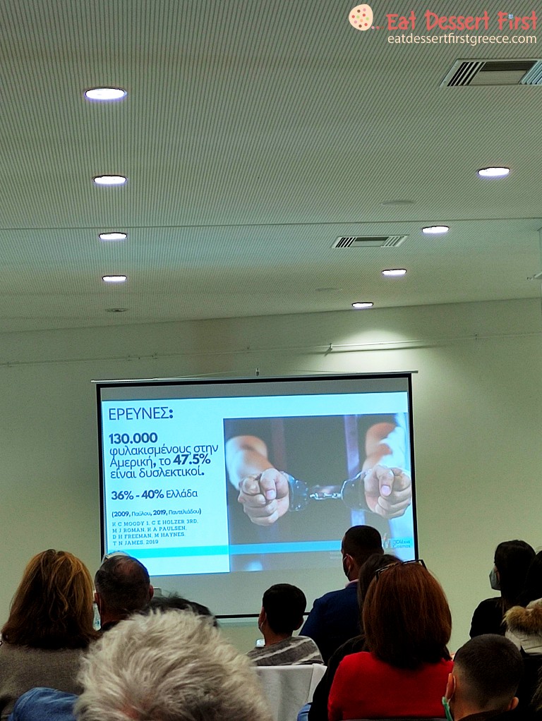 Στη συνέχεια η κ. Παππά μας επισήμανε κάποια στατιστικά στοιχεία :σχεδόν το 50% των φυλακισμένων στην Αμερική είναι δυσλεκτικοί -στην Ελλάδα το 36-40%. Τα χρήματα που δαπανώνται σε κάθε φυλακισμένο είναι πολύ περισσότερα από αυτά που επενδύονται σε κάθε μαθητή. Αυτό μας αφορά όλους!