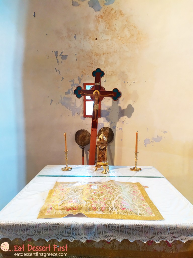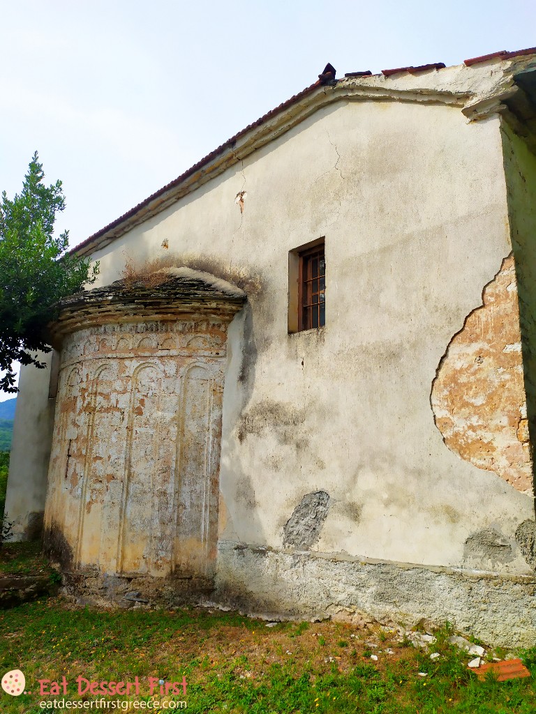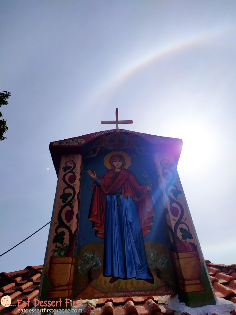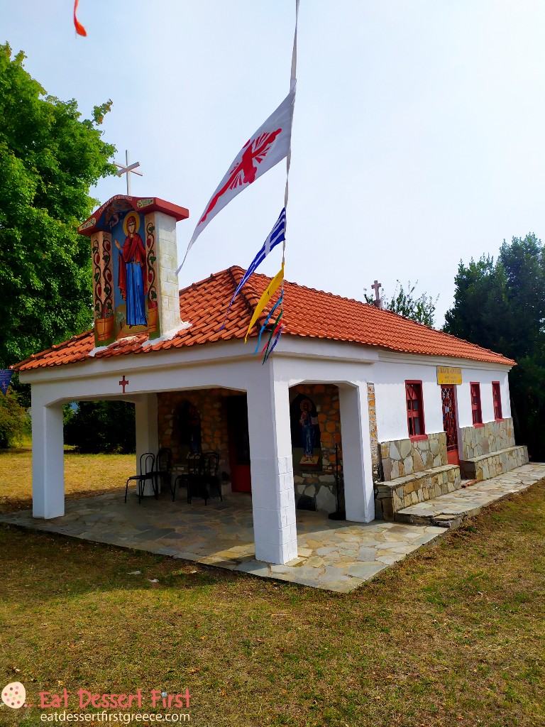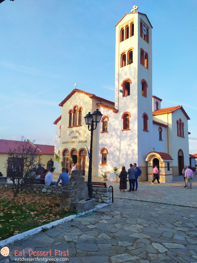 Στο χωριό είχε πολύ κόσμο την ώρα που φτάσαμε και καταλάβαμε γρήγορα γιατί -στην εκκλησία του χωριού, τον Ναό Αγίων Κωνσταντίνου και Ελένης, τελούνταν ένας γάμος και είχε μαζευτεί πολύς κόσμος γύρω από τον ναό. Αυτό εξηγούσε και τα πολυάριθμα αυτοκίνητα που είδαμε παρκαρισμένα στους δρόμους. Αυτή, βέβαια, πρέπει να είναι μια συγκυριακή εικόνα.