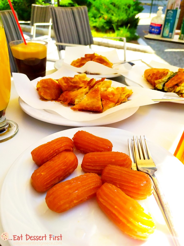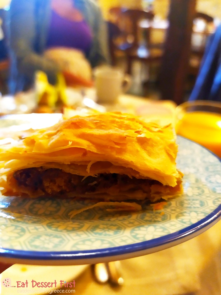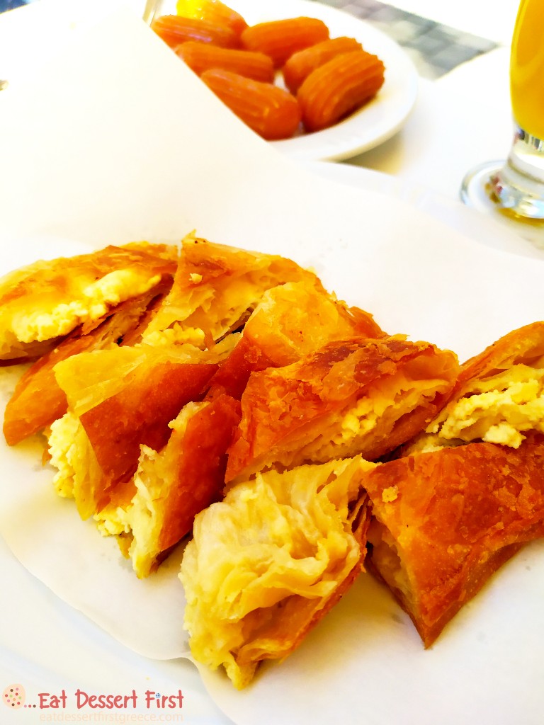 We chose bougatsa with minced meat, spinach and cheese, and for sweet tulubes. It was all delicious!