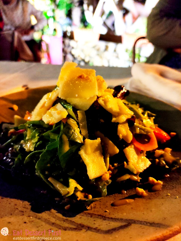 Green salad with Cretan graviera, cherry tomatoes, carrot, walnut and vinaigrette