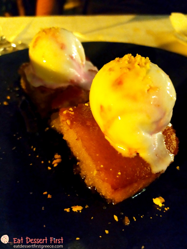 Handmade ravani with ice cream (a photo we managed to take before devouring it)