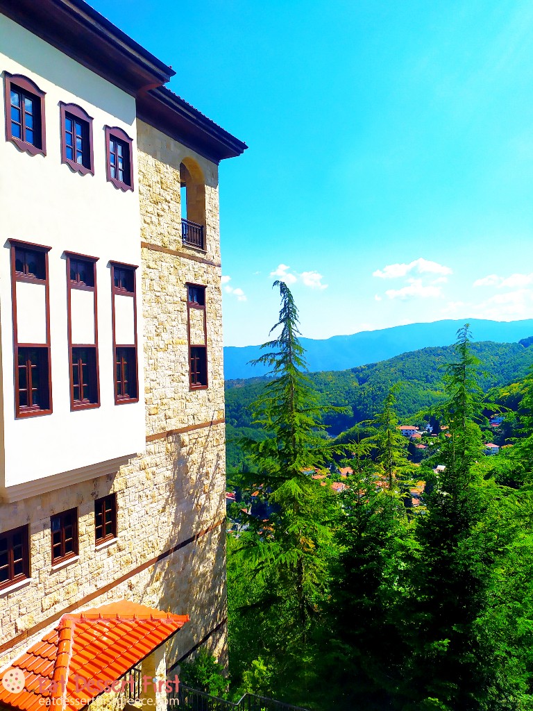 Near the cave we learned that a panoramic four-storey guest house with 72 rooms and other functional spaces for the needs of the pilgrims was built in 1860, as well as a library. Still, small temples were built dedicated to various saints around the monastery. The Trebizond Tutoring Center initially operated in the monastery.