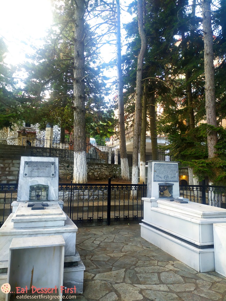 The tombs of Archimandrite Ambrosios Soumeliotis and the owner of the monastery Panagiotis Tanimanidis