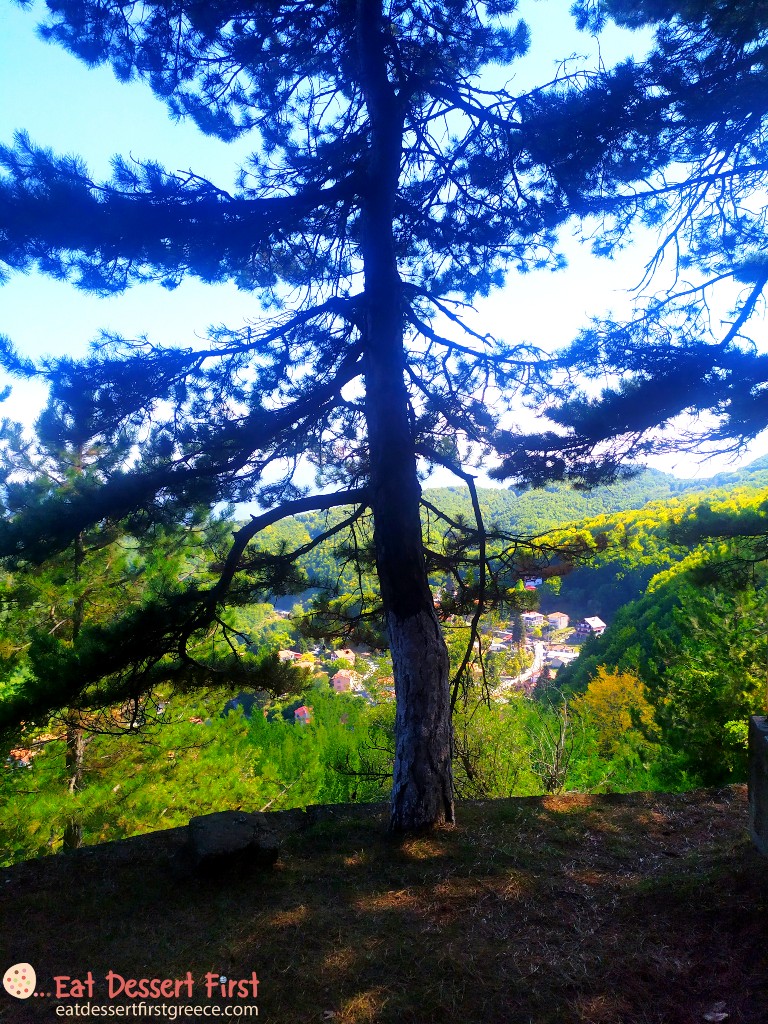 Panagia Soumela in Kastania is one of the largest pilgrimage destinations in our country, with a large attendance of believers in spring, summer and autumn, culminating in the feast of Virgin Mary on the 15th of August. In winter it is more difficult to access, as it snows. To serve the people, hotels and shops have been set up in the surrounding area, in one of which we sat down to drink coffee. Of course, we also bought souvenirs for our loved ones.