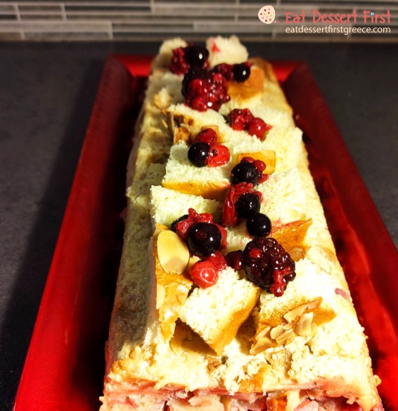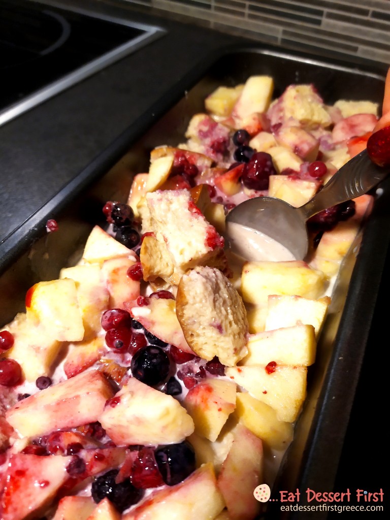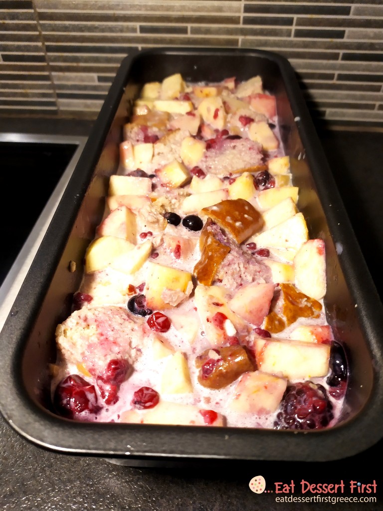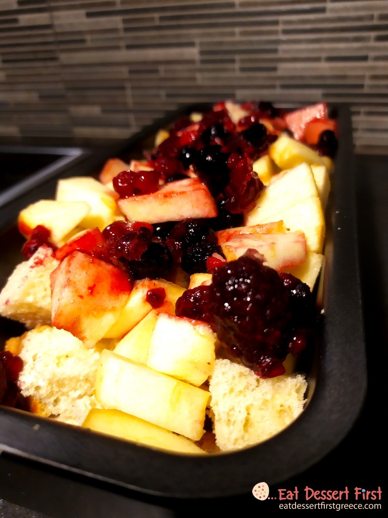 Πουτίγκα με βασιλόπιτα, μήλο και φρούτα του δάσους
