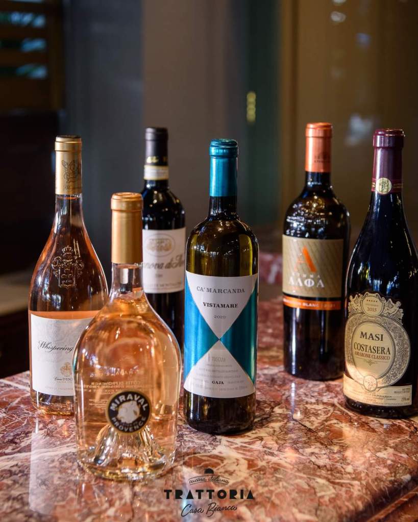 Στην Ιταλία συνδυάζουν πολύ τα Chianti και τα Barolo, τα οποία είναι ελαφριά κόκκινα, με κόκκινες σάλτσες και μακαρονάδες. Ένα κρέας μπορούμε να το συνοδέψουμε με ένα Syrah ή με ένα Malbec -το Malbec είναι συνήθως χιλιανό, αλλά στην τρατορία είναι ελληνικό από τη Νεμέα με δική τους ετικέτα από το οινοποιείο Troianou Wines. Από λευκά κρασιά, μια Μαλαγουζιά πάει περισσότερο με φρουτώδεις σαλάτες, το Catarratto και το Pinot Grigio, τα οποία είναι πιο ξηρά, ταιριάζουν με πιο φυλλώδεις σαλάτες. Με το Sauvignon Blanc ή με το Ασύρτικο με την πετρώδη επίγευση θα φας ψάρι. Η Μαλαγουζιά ή το Garganega, τα οποία βγάζουν πυρηνόκαρπα, ροδάκινα, βερίκοκα, μπορούν να συνδυαστούν με ένα πιάτο με γλυκές γεύσεις ή με ένα γλυκό. Η τρατορία παράγει και το δικό της ημίγλυκο, το οποίο είναι το αγαπημένο των πελατών της. Για να ευχαριστηθείς ένα ημίγλυκο, μας επισήμανε ο Δημήτρης, πρέπει να έχει οξύτητα για να συνδυαστεί με τη γλυκύτητα, όπως το Vinsanto· το ημίγλυκο ταιριάζει πολύ με ένα αλμυρό τυρί.