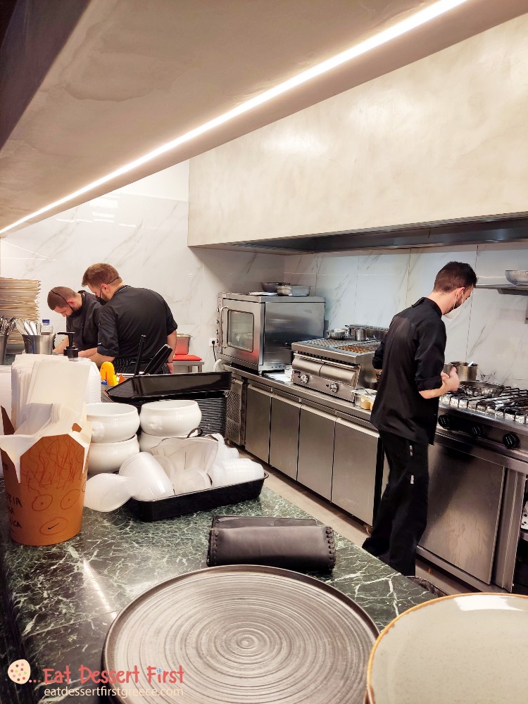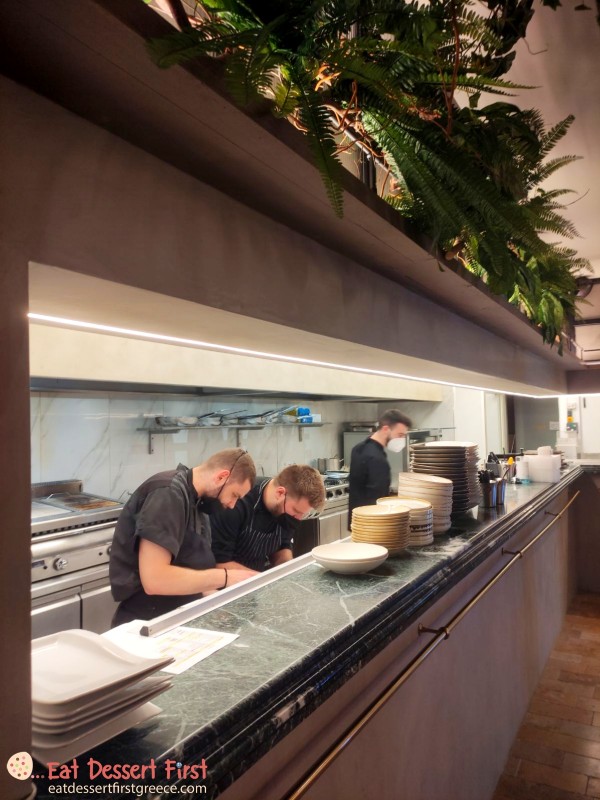 Ένα από τα βασικότερα και πιο όμορφα σημεία του εσωτερικού χώρου της τρατορίας είναι η ανοιχτή κουζίνα. Από κάθε σημείο του εστιατορίου μπορείς να δεις τους μάγειρες να μαγειρεύουν το φαγητό που θα γευτείς. Όλα παρασκευάζονται μπροστά στα μάτια μας, με τάξη, ηρεμία και μεράκι. Η κουζίνα είναι χωρισμένη στο μέρος όπου φτιάχνεται η πίτσα, στην κρύα κουζίνα και στη ζέστη κουζίνα. Σαλάτες, ορεκτικά, χειροποίητα ζυμαρικά, ριζότο, κυρίως πιάτα, πίτσες, γλυκά, μπορούμε να τα δούμε όλα να ετοιμάζονται προτού έρθουν στο τραπέζι μας.