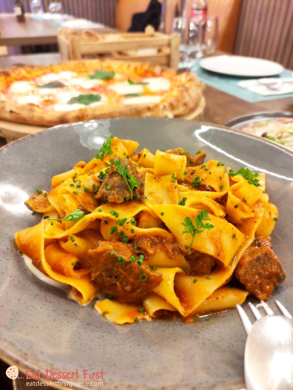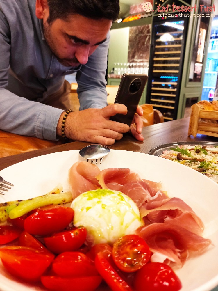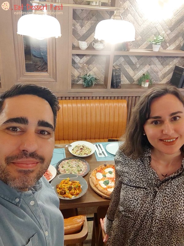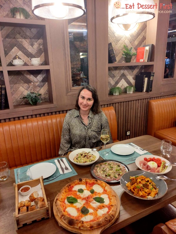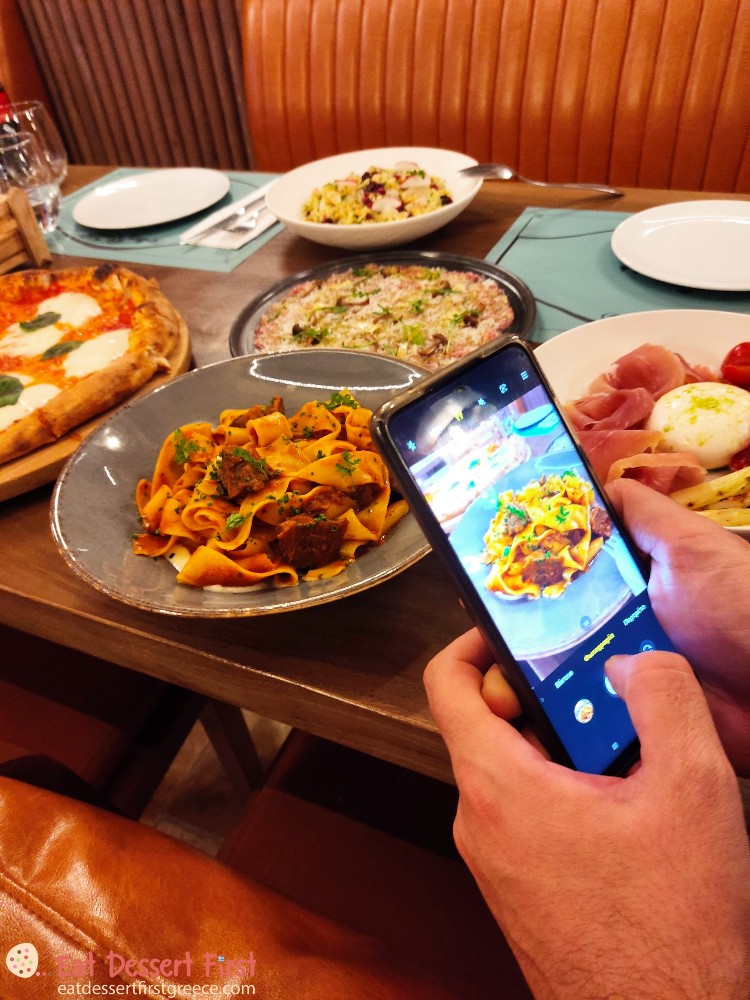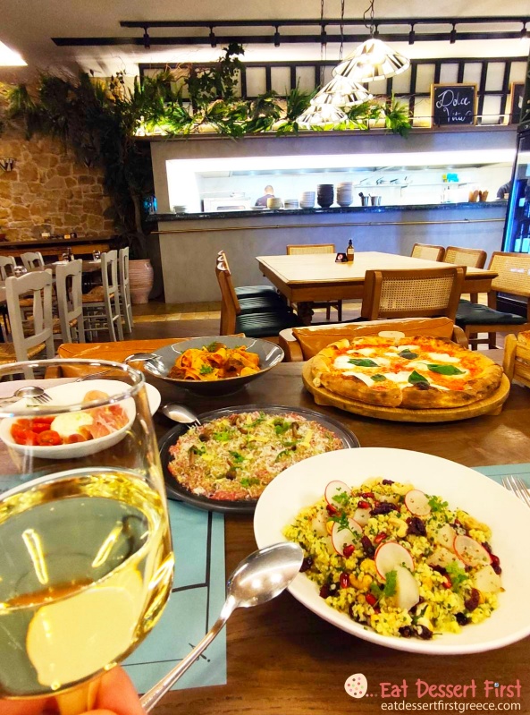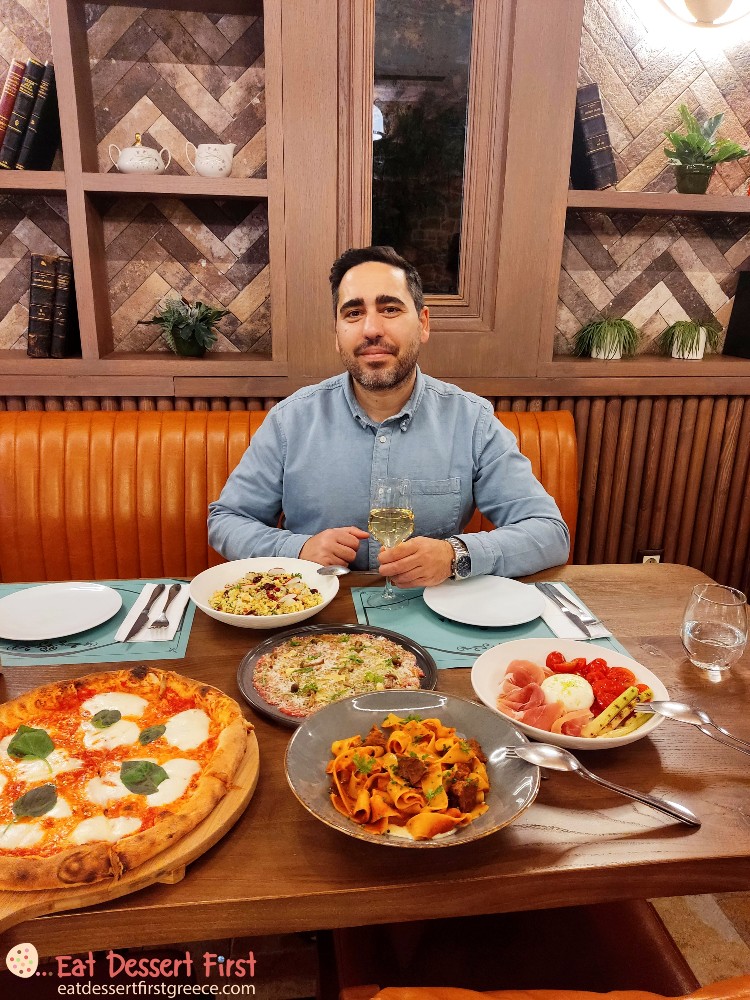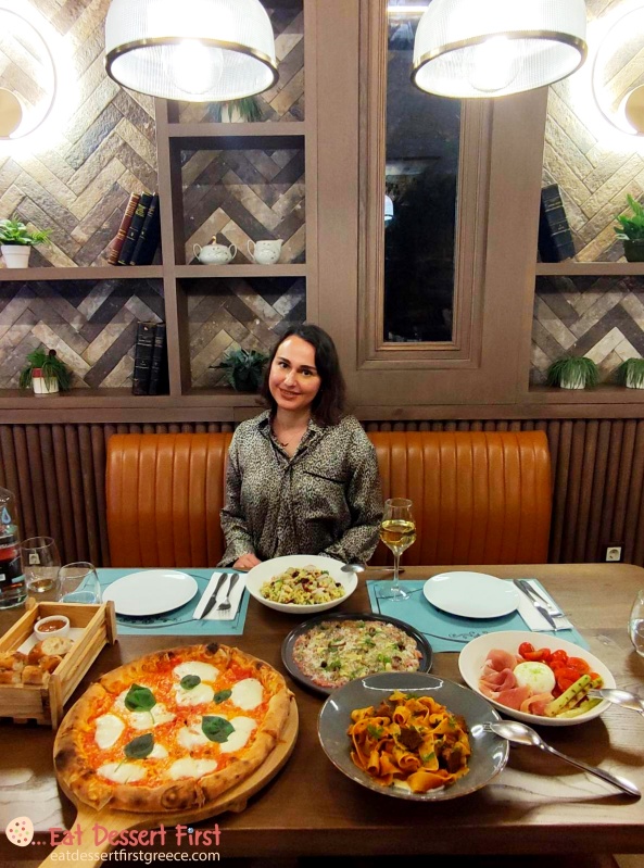 Όσο μιλούσαμε, σιγά σιγά το τραπέζι μας είχε αρχίσει να γεμίζει με λαχταριστά, μυρωδάτα πιάτα τα οποία ανυπομονούσαμε να δοκιμάσουμε… Πραγματικά δεν ξέραμε από τι να ξεκινήσουμε, ήταν όλα φανταστικά! Φρεσκοψημένο ψωμάκι, πλούσια ορεκτικά, πολύχρωμη σαλάτα, αυθεντική πίτσα και χειροποίητα ζυμαρικά, μαζί με καλό κρασάκι, εικόνες και γεύσεις που μας έκαναν να βιώσουμε στην πράξη όλα όσα συζητήσαμε. Ελπίζουμε με τις φωτογραφίες μας να μπορέσουμε να σας μεταφέρουμε τη βαθιά νοστιμιά τους!