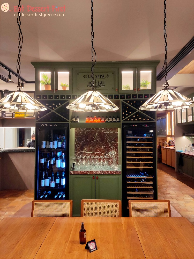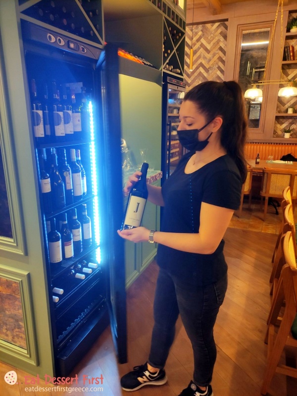 Ο Δημήτρης μας είπε πως έχει εργαστεί για χρόνια ως μπάρμαν, κι έτσι ήταν ο κατάλληλος άνθρωπος για να μας μιλήσει για τους συνδυασμούς των κρασιών με το φαγητό που σερβίρουν. Αρχικά μας είπε πως ο γενικός κανόνας είναι πως τα λευκά κρασιά πάνε με κοτόπουλο, με σαλάτες, με ψάρι, όπως και το ροζέ κρασιά. Τα κόκκινα κρασιά, τα οποία έχουν τανίνες, πάνε με το κρέας επειδή οι τανίνες «ξεπλένουν» την πρωτεΐνη του κρέατος.