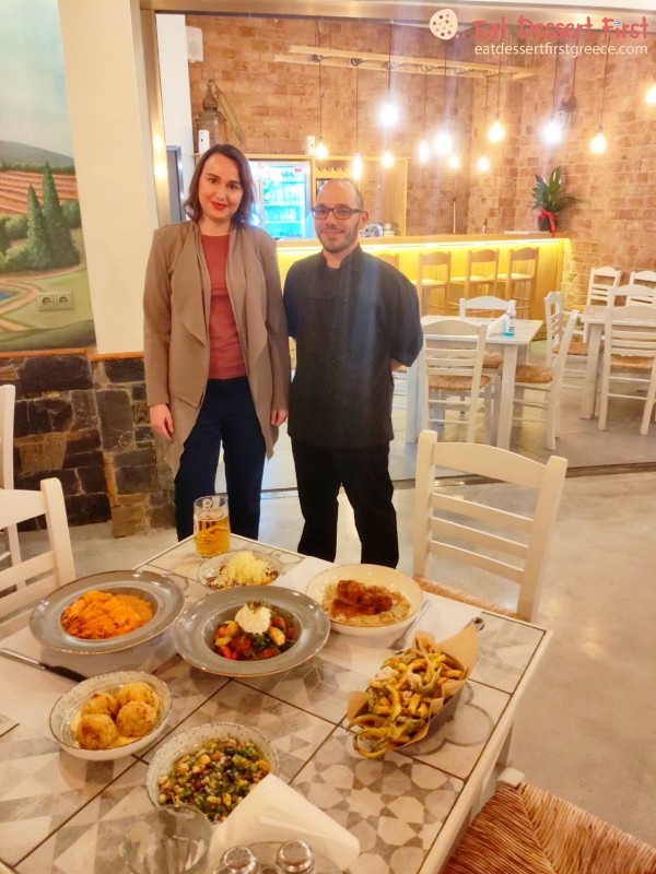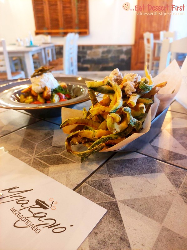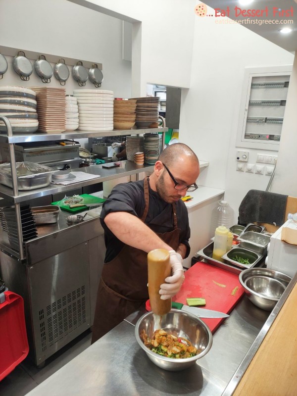 Στο Μπακαλιό μας περίμενε ο νέος ιδιοκτήτης και σεφ του μεζεδοπωλείου, ο Γιώργος. Θέλαμε φυσικά να μάθουμε τα πάντα για το καινούριο του εγχείρημα οπότε ξεκινήσαμε μια ευχάριστη συζήτηση. Η επιχείρηση είναι πραγματικά ολοκαίνουρια, το μαγαζί όταν πήγαμε ήταν ανοιχτό 40 μέρες, περίπου από τις αρχές Μαρτίου. Ο Γιώργος το έστησε από την αρχή μόνος του και πραγματικά έχει κάνει φοβερή δουλειά!
