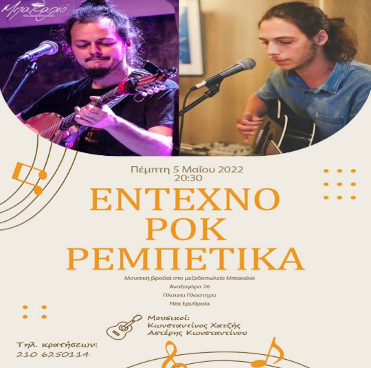 Από τα πιο ταιριαστά χαρακτηριστικά στο Μπακαλιό που αναδεικνύουν τον χαρακτήρα του ως ενός σύγχρονου μεζεδοπωλείου είναι η μουσική του, η οποία είναι ελληνική έντεχνη. Κάθε Πέμπτη διοργανώνουν ζωντανές μουσικές βραδιές με σμυρνέικα, ρεμπέτικα, ροκ, έντεχνα. Τις μέρες αυτές έρχεται στο μαγαζί περισσότερο νεολαία, αλλά και μεγαλύτερης ηλικίας κόσμος και οικογένειες. Θα είναι σίγουρα φανταστικά και ανυπομονούμε να πάμε μια Πέμπτη βραδάκι να τους απολαύσουμε!