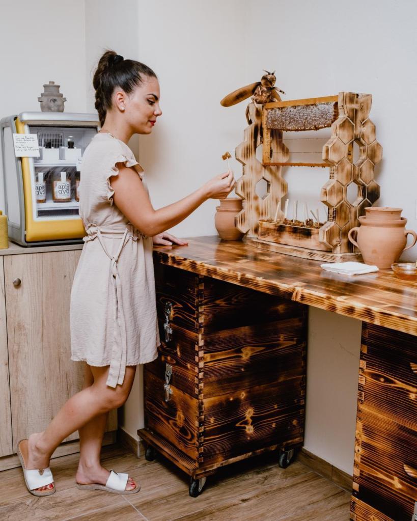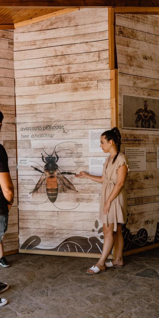 Η μελισσοκομία στην Κρήτη, όπως μας εξήγησε η Αθηνά, έχει τεράστια ιστορία, από τη μινωική εποχή. Με βάση αρχαιολογικά ευρήματα, οι μέλισσες από την αρχαιότητα τιμούνταν και θεωρούνταν θεϊκά πλάσματα. Όλα αυτά μπορούμε να τα μάθουμε στο μουσείο μελιού του Apiθανο. Εκεί θα δούμε παλιές πήλινες κυψέλες που έχουν κάνει δωρεά κάτοικοι της περιοχής, όπως και μακέτες από ευρήματα της μινωικής εποχής με αναφορά στα μουσεία της Κρήτης όπου μπορούν να πάνε οι επισκέπτες για να τα δουν από κοντά. Στο μουσείο μελιού, εκτός από τον τόπο τους, το Μελιδόνι, προβάλλονται και άλλα μέρη του νησιού, όπως το κοντινό χωριό Μαργαρίτες με μεγάλη παράδοση στην κεραμική, από το οποίο προέρχονται οι πήλινες κηρήθρες που εκτίθενται στο εργαστήριο. Για εμάς είναι πάρα πολύ σημαντική η προσπάθεια να αναδεικνύουν τον τόπο τους, αλλά και τις γύρω περιοχές!