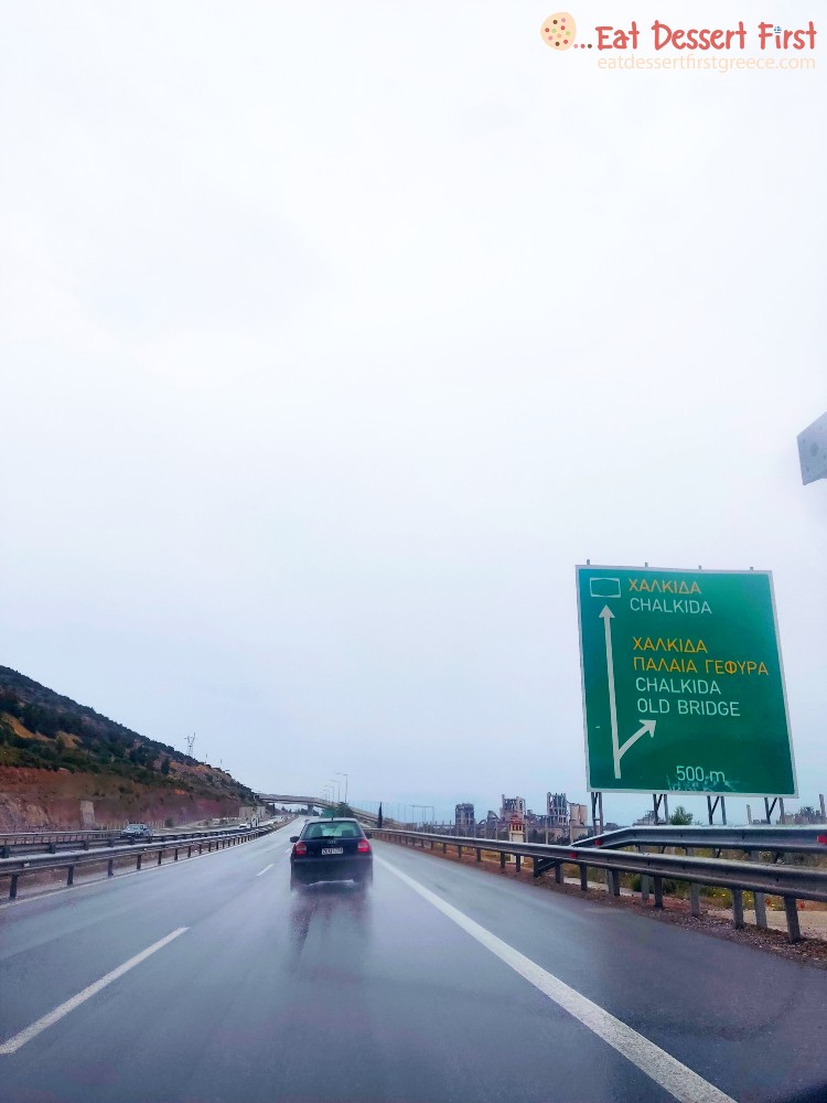 Μια Κυριακή του Μαΐου είχαμε σκοπό να πάμε στη Χαλκίδα μια μονοήμερη εκδρομούλα. Όταν ξυπνήσαμε είδαμε πως ο καιρός ήταν συννεφιασμένος και βροχερός, αλλά δεν μας χάλασε καθόλου τα σχέδια, μιας και σκεφτήκαμε πως αυτή η μουντάδα θα είχε μια μελαγχολική ομορφιά… Οπότε πήραμε τα καφεδάκια μας στο χέρι, μπήκαμε στο αυτοκίνητο και ξεκινήσαμε!