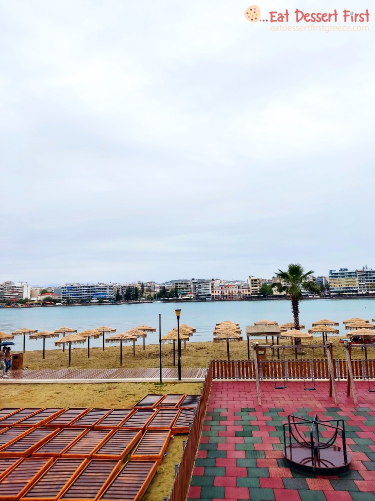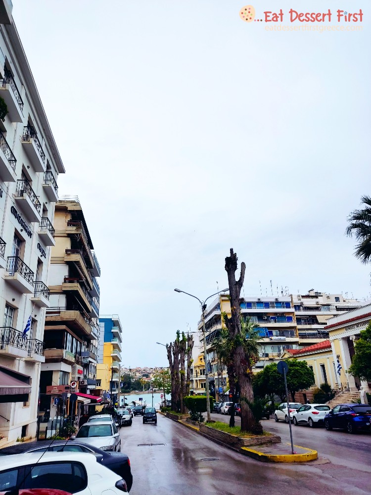 Το σήμα κατατεθέν βέβαια της Χαλκίδας είναι ο παραλιακός πεζόδρομος με τα πολλά μαγαζιά, οπότε αυτός ήταν ο πρώτος μας προορισμός. Ο πεζόδρομος είναι πραγματικά πολύ μεγάλος, με υπέροχη θέα στη θάλασσα και στον απέναντι λόφο της Κανήθου, διάσπαρτους φοίνικες και πάρα πολλές επιλογές από καφετέριες, ζαχαροπλαστεία, εστιατόρια για κρέας και ψάρι, ουζερί, αλλά και ξενοδοχεία για όσους θέλουν να περάσουν τη νύχτα στην πόλη. Παρά τη βροχή τα καταστήματα ήταν γεμάτα και υπήρχαν πολλές οικογένειες, παρέες και ζευγάρια που έκανα τη βόλτα τους χαζεύοντας τη θάλασσα. Φανταστείτε τι γίνεται τις μέρες που έχει ήλιο!