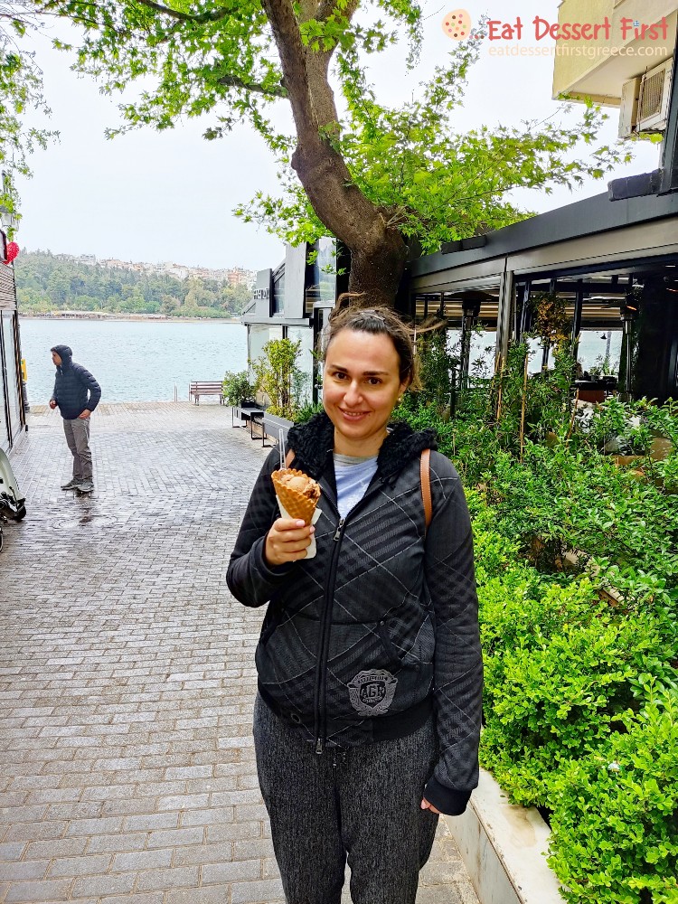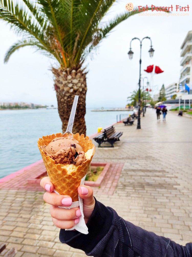 Κατεβήκαμε από το κάστρο, περάσαμε πάλι την παλιά γέφυρα του Ευρίπου και επιστρέψαμε στο ευβοϊκό κομμάτι της Χαλκίδας. Αυτό που χρειαζόμασταν τώρα ήταν ένα δροσερό παγωτάκι! Επιλέξαμε ένα από τα χαρακτηριστικά, παλιά ζαχαροπλαστεία της πόλης, το Gelato Tartufo, σε έναν δρόμο πιο πάνω από τον παραλιακό πεζόδρομο, με πολλά χρόνια εμπειρίας στο παγωτό. Παγωτάκι και βόλτα με θέα τη θάλασσα, το καλύτερο!