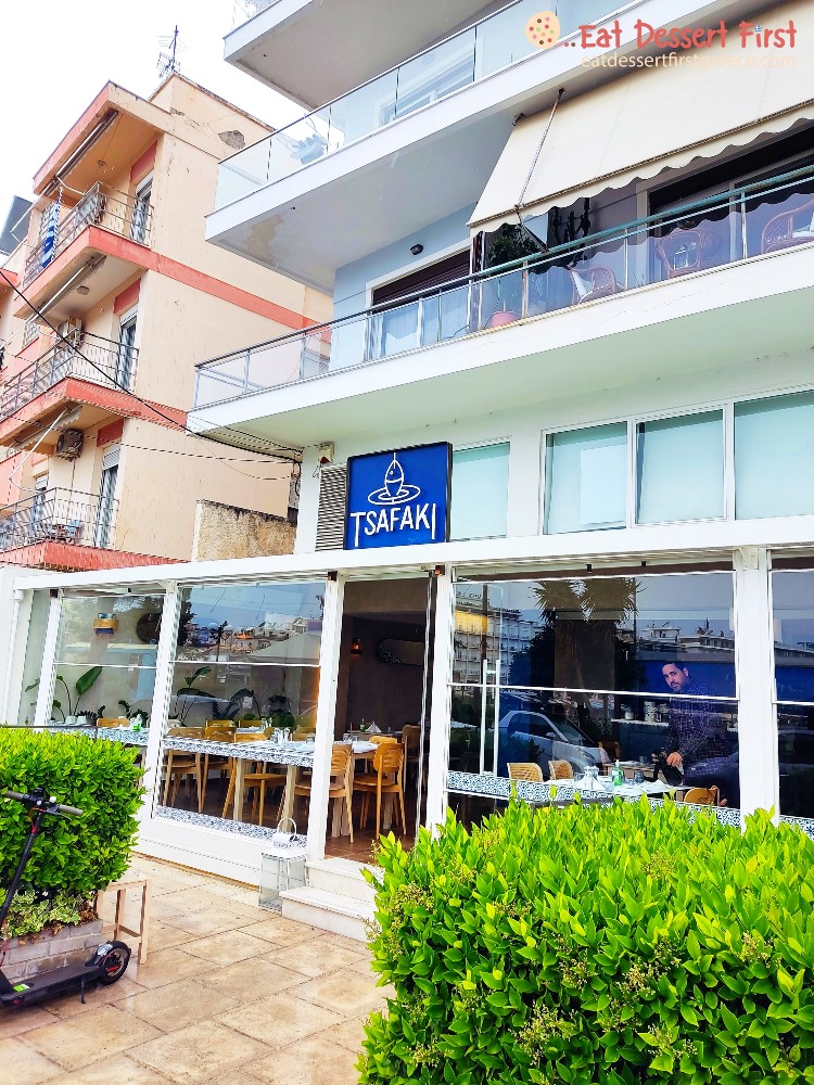 Ξαναβρήκαμε στη θάλασσα, λοιπόν, με προορισμό το Τsafaki στην οδό Αρχιεπισκόπου Μακαρίου 5, κοντά στην παλιά γέφυρα της Χαλκίδας. Το Tsafaki είναι ένα σχετικά νέο, καλοκαιρινό ουζερί-μεζεδοπωλείο της πόλης. Λειτουργεί από το 2019 και έχει αγαπηθεί πολύ από κατοίκους και επισκέπτες, ειδικά από την Αθήνα. Οι ιδιοκτήτες του είναι ο Γιώργος Ζαχαριάς και ο Νίκος Καρακάσης. Στην ίδια ιδιοκτησία ανήκουν και τα πολύ καλά εστιατόρια θαλασσινών Tsaf στο κέντρο της Χαλκίδας και στη Μύκονο.